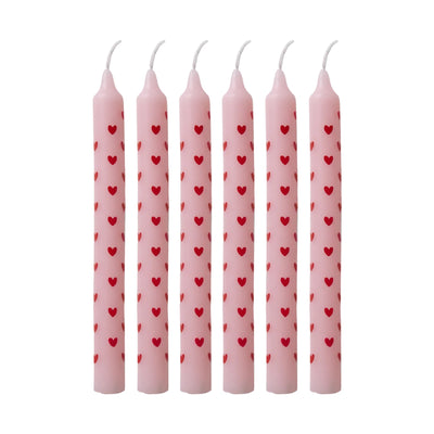 Kleine Paraffinwachs Kerzen - Hellrosa - Heart Print