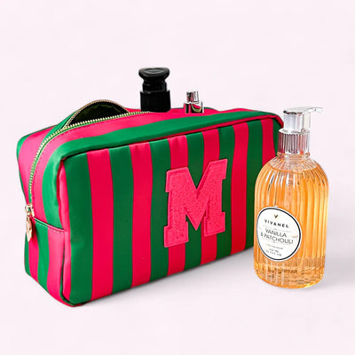 Romy Kosmetiktasche L Stripes Smaragd Neon Pink
