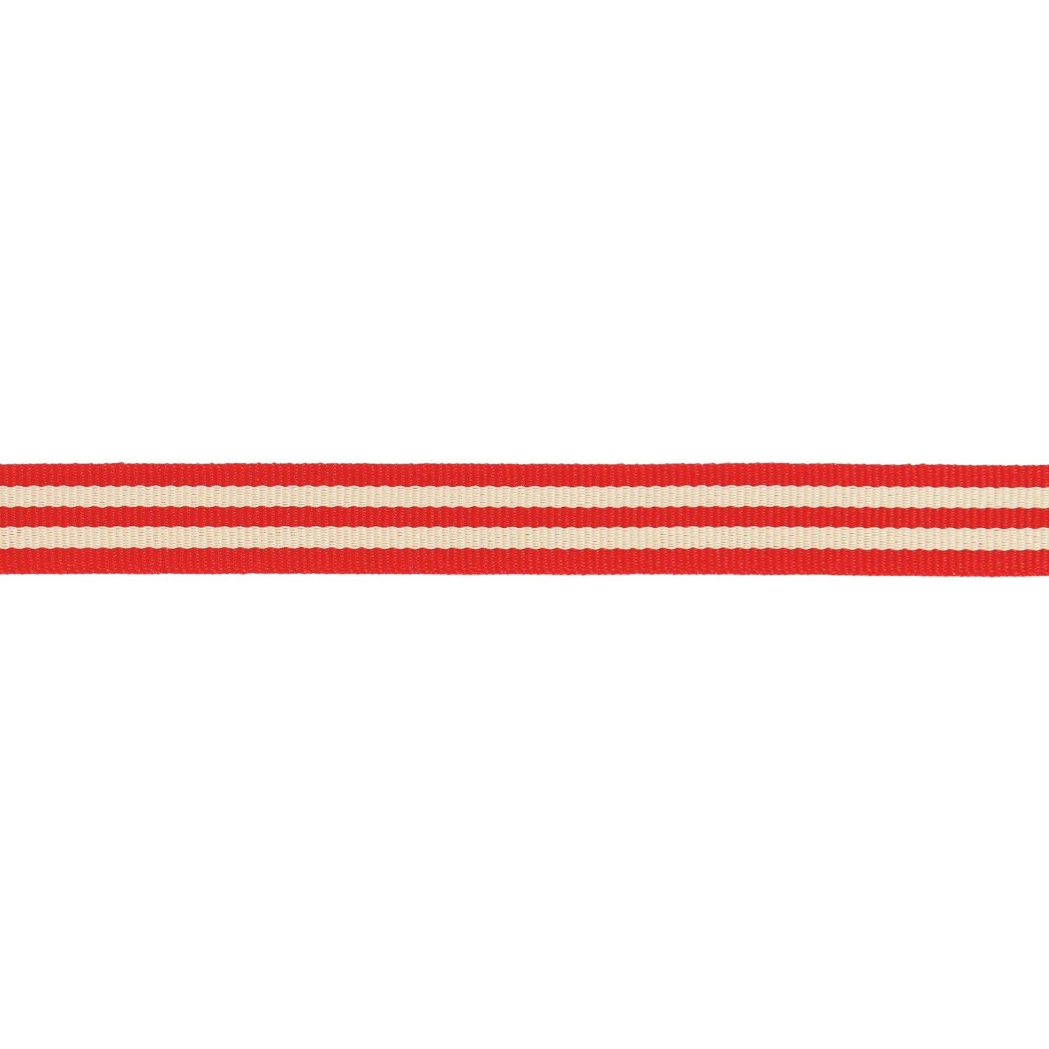 Das Band mit Duo-Streifen in den Farben Rot und Creme hat eine Breite von 13 mm und eine Länge von 3 m. Gefertigt aus 100% Polyester, wird es in einer plastikfreien Verpackung geliefert. Es eignet sich hervorragend für Geschenkverzierungen, Bastel- und Dekorationsprojekte.
