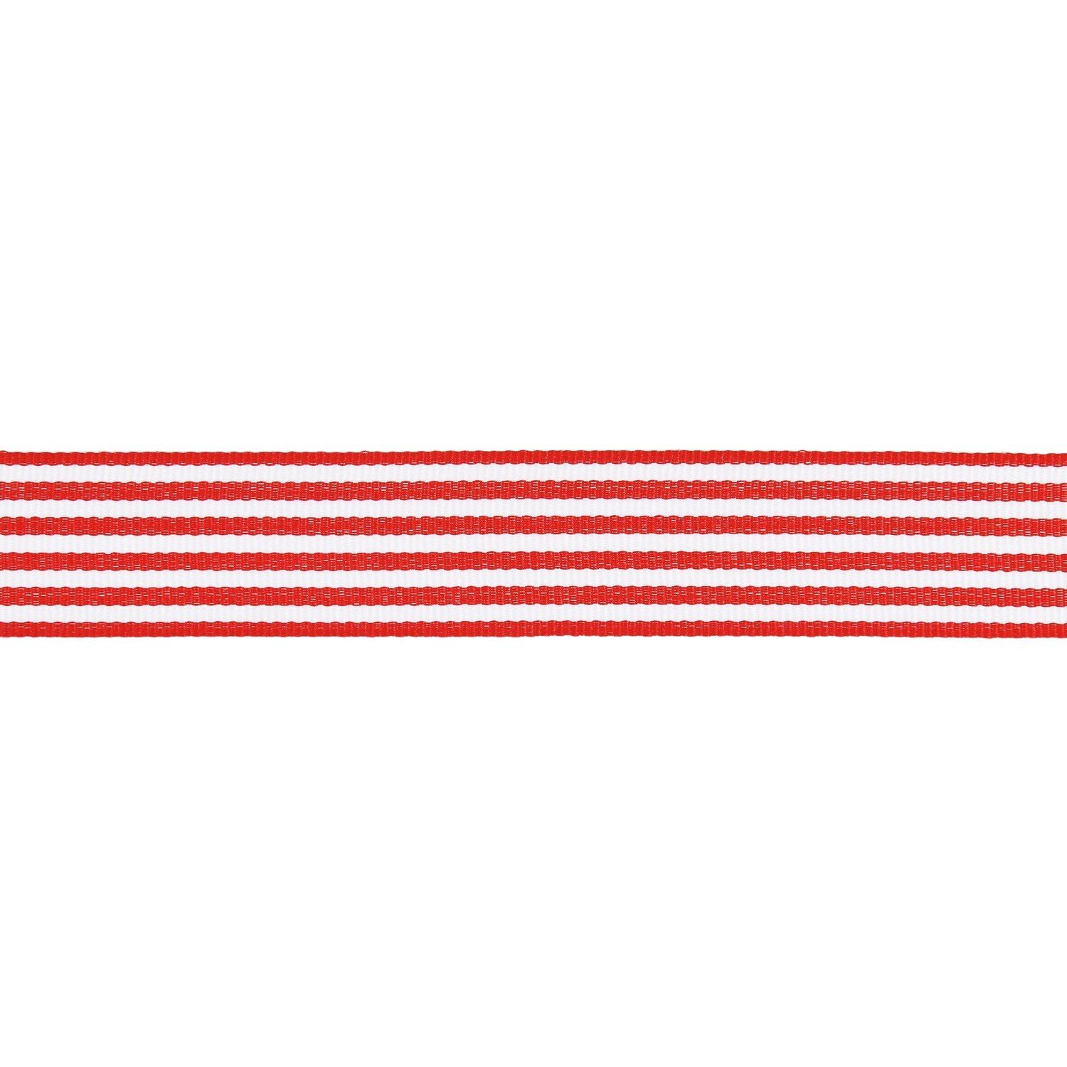 Das Band mit Duo-Streifen in den Farben Rot und Weiß hat eine Breite von 25 mm und eine Länge von 3 m. Gefertigt aus 100% Polyester, wird es in einer plastikfreien Verpackung geliefert. Es eignet sich hervorragend für Geschenkverzierungen, Bastel- und Dekorationsprojekte.