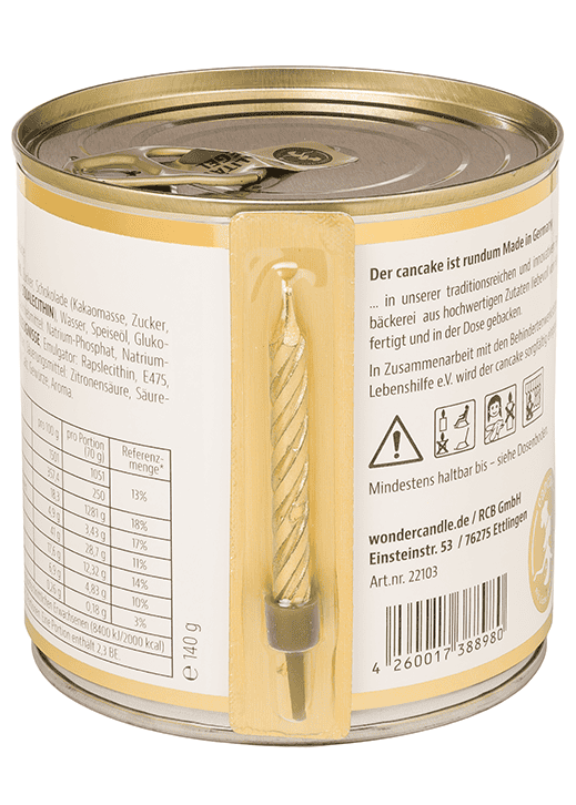 Der Cancake wird in unserer Traditionsbäckerei direkt in der Dose gebacken und bis zu 18 Monate haltbar gemacht.