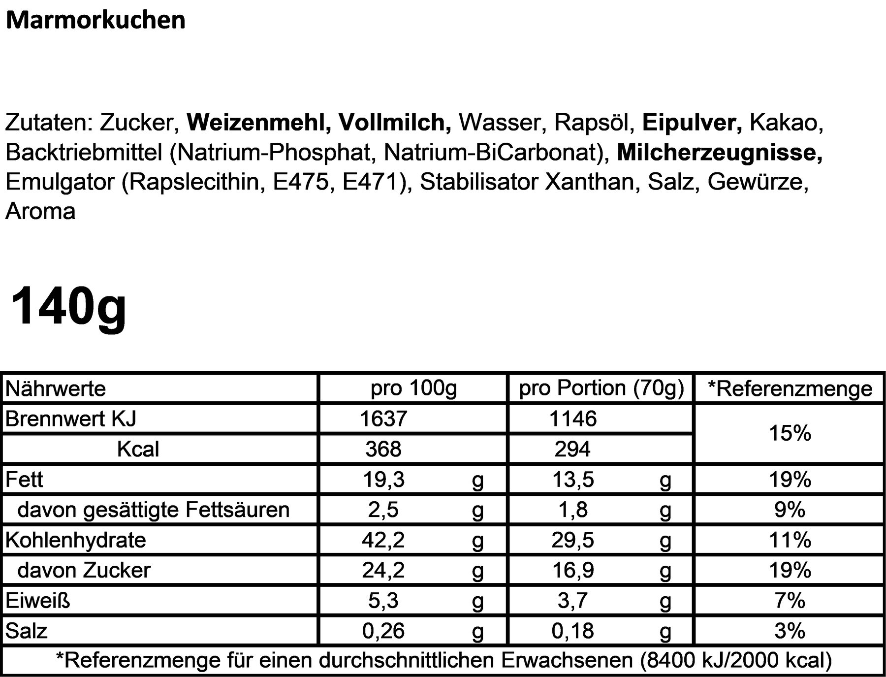 • Inhalt: ca. 130 g / Kuchen