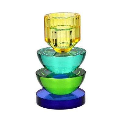 SARI, KRISTALLGLAS, KERZENHALTER H14CM, RUND, BLAU/GRÜN/GELB, GS
