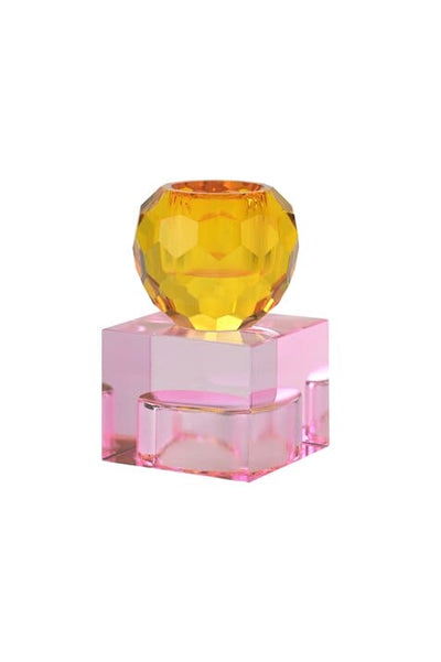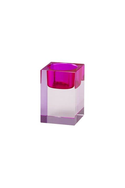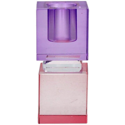 SARI, KRISTALLGLAS, KERZENHALTER H8,8CM, ECKIG, ROSA/LILA, GS