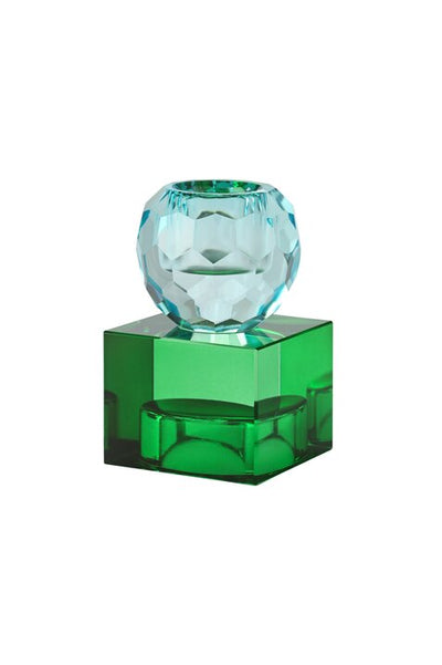 SARI, KRISTALLGLAS, KERZENHALTER/TEELICHTHALTER, KUGEL/CUBE, HELLBLAU/GRÜN, GS
