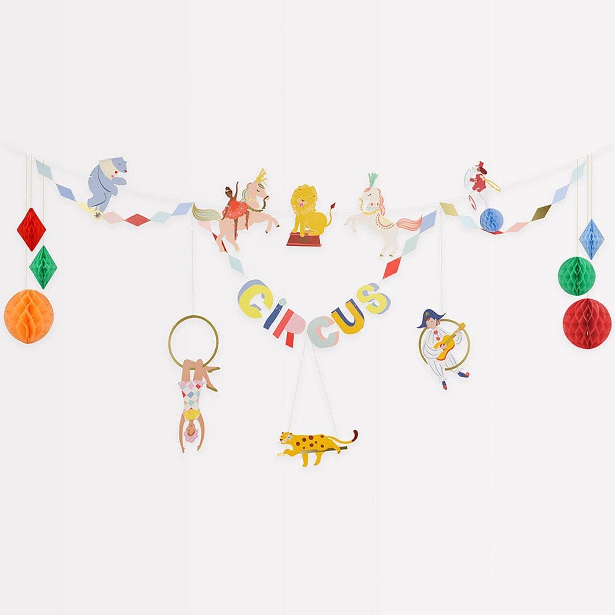 Herzlich willkommen, herzlich willkommen, diese auffällige Girlande ist spaßig und fabelhaft für Ihre Zirkusparty. Klassische Zirkussymbole kombiniert mit trendigen Streifen und Harlekinen, 3D-Wabenformen und einem Hauch von Goldfolie machen diese Dekoration unvergesslich!
