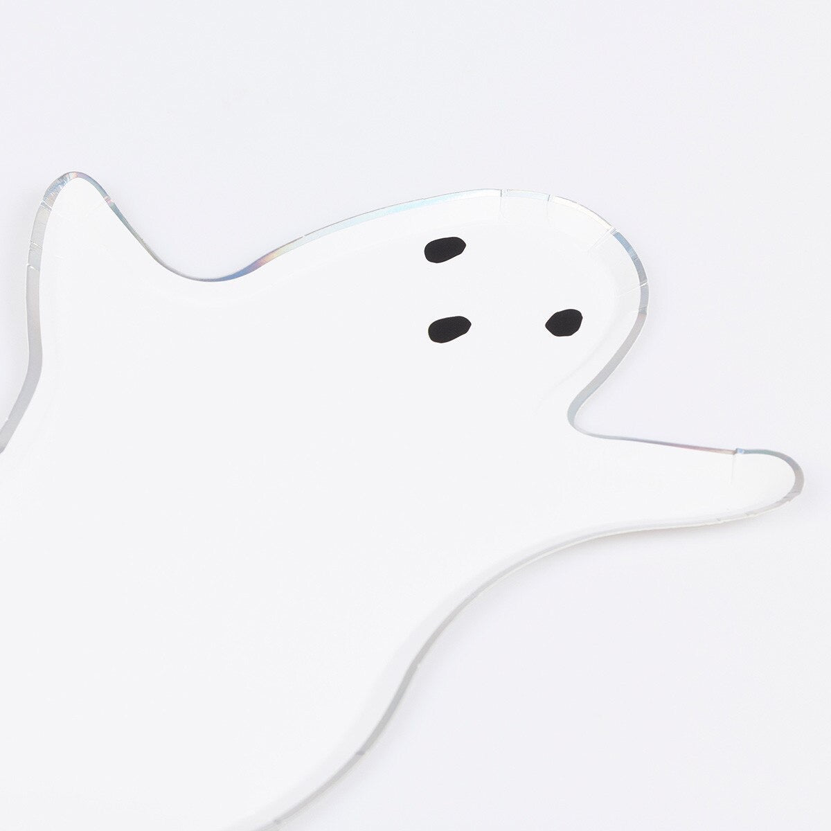 Buh! Verleihe deiner Halloween-Party mit unseren Papptellern in Geisterform das gewisse Etwas. Das klassische, schwebende Geister-Design mit einem funkelnden silbernen Hologrammfolienrand sorgt für einen gespenstisch-coolen Effekt – perfekt für kinderfreundliche Feiern oder schaurig-stilvolle Cocktailpartys!