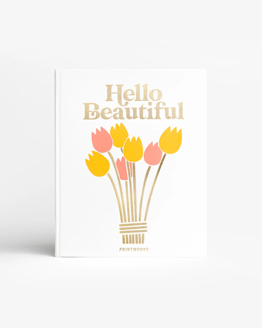 Discover our Hello Beautiful Coffee Table Photo Album featuring an elegant, white cloth cover with gold foiled text and silkscreen printed tulips in pink and orange. Inside, you'll find 30 pages of high-quality black photo paper, allowing you to attach your photos easily using our stickers or photo corners, which are bought separately. It accommodates two 10x15 cm photographs on each page, with space for personal notes below. If you need additional pages, you can order extra photo paper (large). Please note that the album can accommodate a maximum of 40 pages.