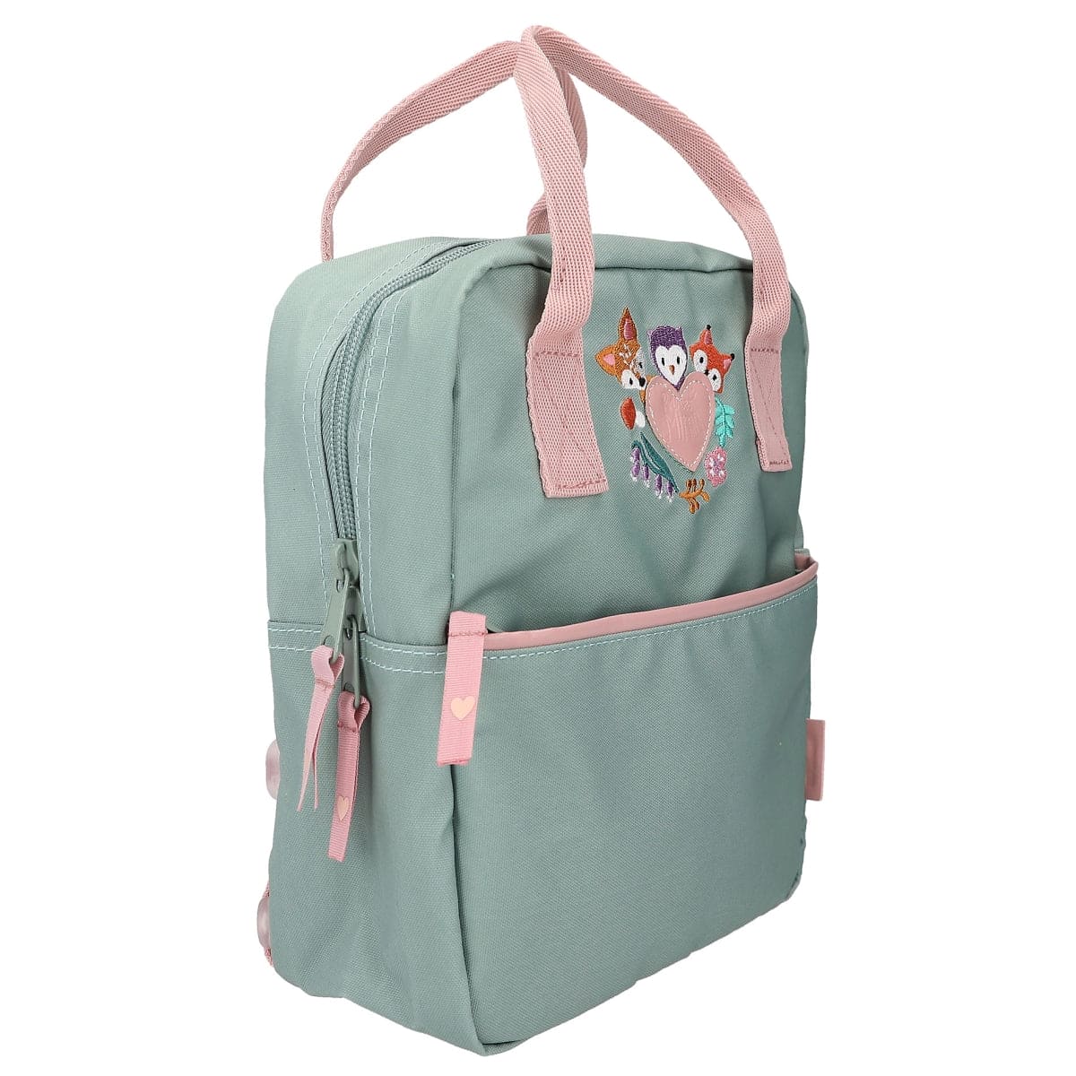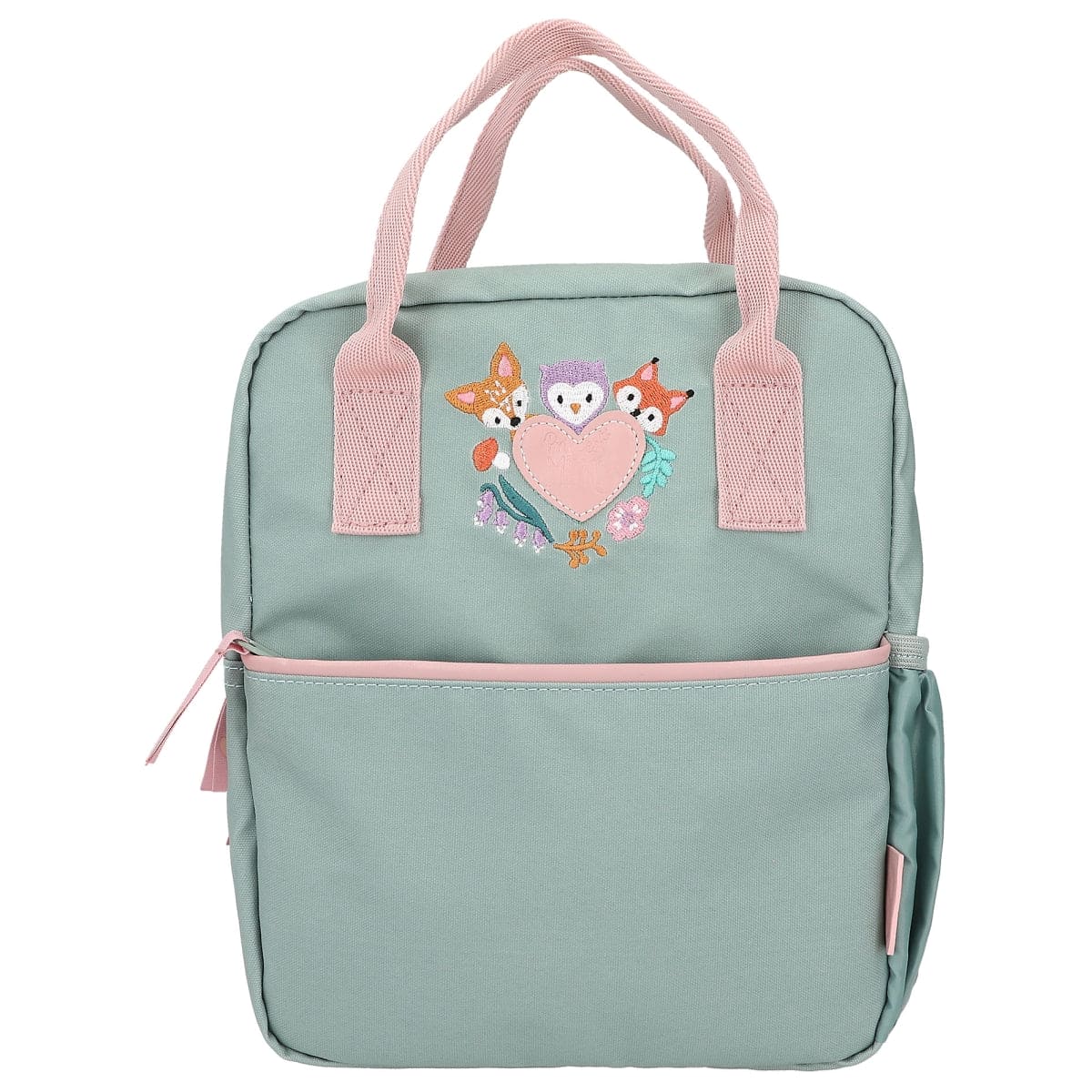 Zauberhaft natürlich: Der kleine Rucksack von Princess Mimi in zartem Grün mit rosa Details hat eine niedliche Stickerei mit Waldtieren auf der Front. Die Gurte sind in der Länge verstellbar und der Brustgurt sorgt für einen noch besseren Sitz. Auch praktisch: die Fronttasche mit Reißverschluss, die Seitentasche für die Trinkflasche, der Griff oben und das abwischbare Material (100 Prozent Polyester mit PVC-Beschichtung).