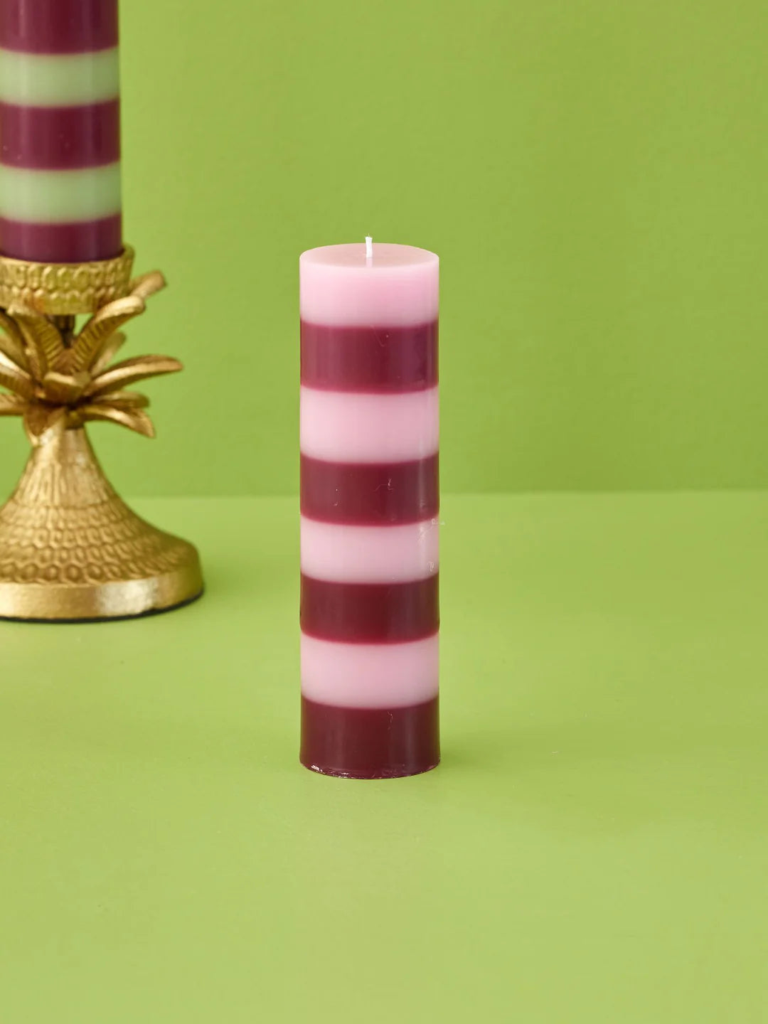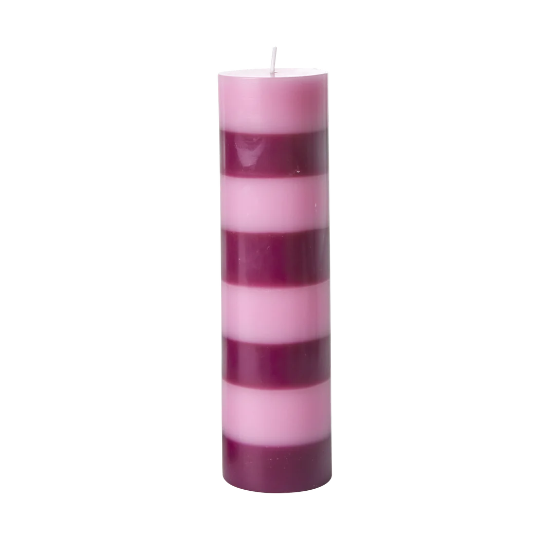 Wunderschöne gestreifte Blockkerze in einer tollen Farbkombination: Pink und zartes Pflaume. Sie sorgt überall dort, wo du sie platzierst, für „hygge“ und gemütliche Atmosphäre – im Wohnzimmer, im Schlafzimmer oder vielleicht sogar im Badezimmer. Diese Kerze ist groß, aber es gibt sie auch in einer kleineren Größe und vielen anderen Farbkombinationen.