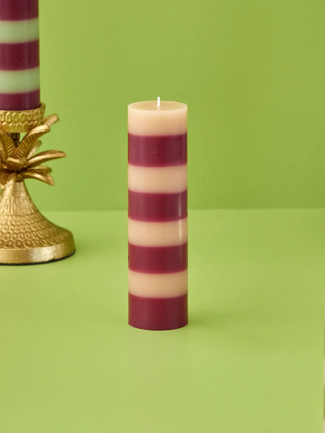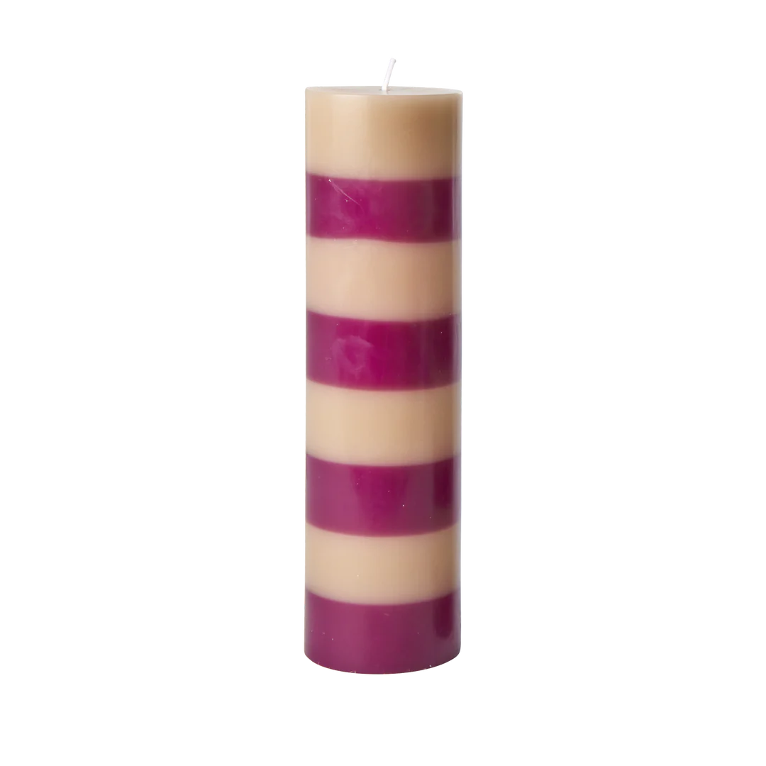 Wunderschöne gestreifte Blockkerze in einer tollen Farbkombination: Beige und zartes Pflaume. Sie sorgt überall dort, wo du sie platzierst, für „hygge“ und gemütliche Atmosphäre – im Wohnzimmer, im Schlafzimmer oder vielleicht sogar im Badezimmer. Diese Kerze ist groß, aber es gibt sie auch in einer kleineren Größe und vielen anderen Farbkombinationen.