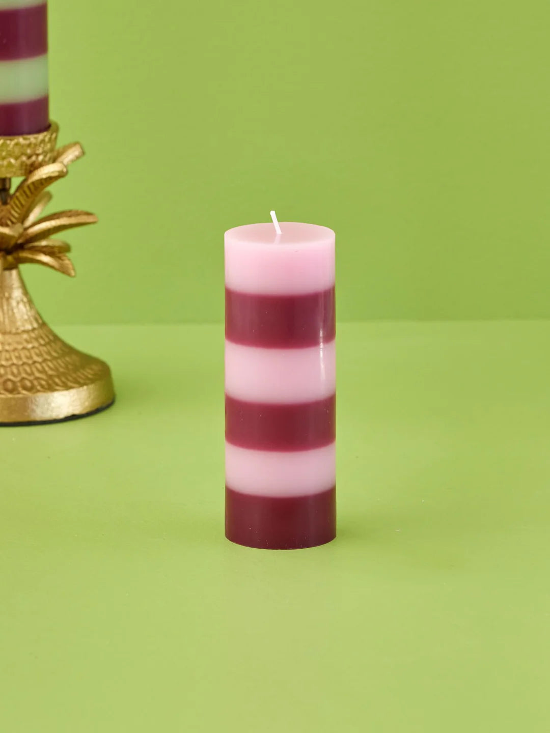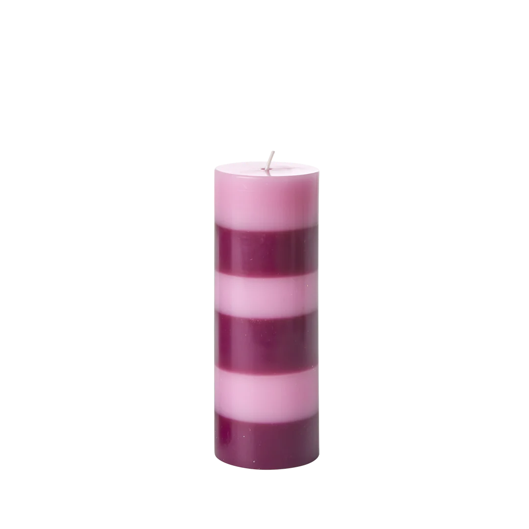 Wunderschöne gestreifte Blockkerze in einer tollen Farbkombination: Pink und zartes Pflaume. Sie sorgt überall dort, wo du sie platzierst, für „hygge“ und gemütliche Atmosphäre – im Wohnzimmer, im Schlafzimmer oder vielleicht sogar im Badezimmer. Diese Kerze ist klein, aber es gibt sie auch in einer größeren Größe und vielen anderen Farbkombinationen.