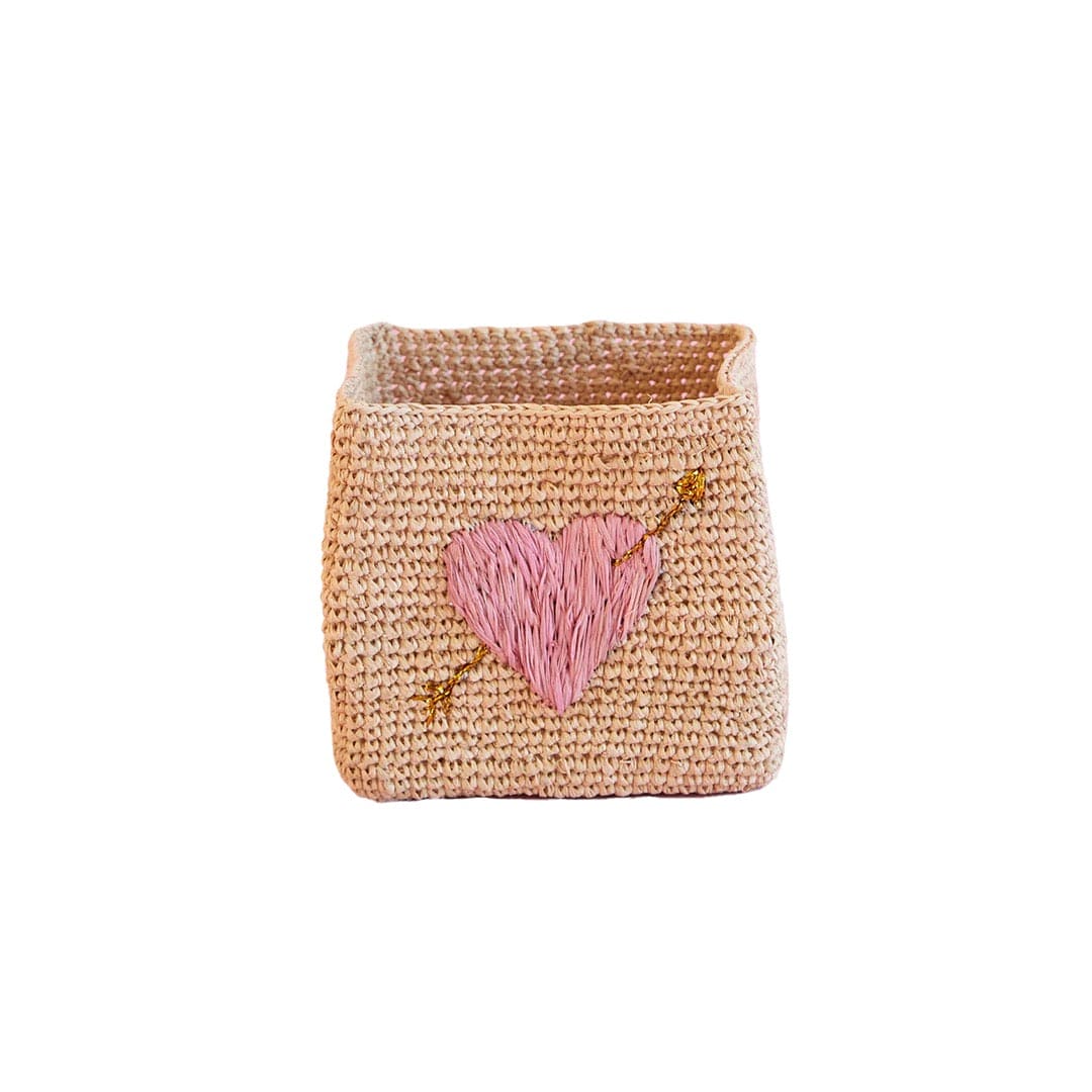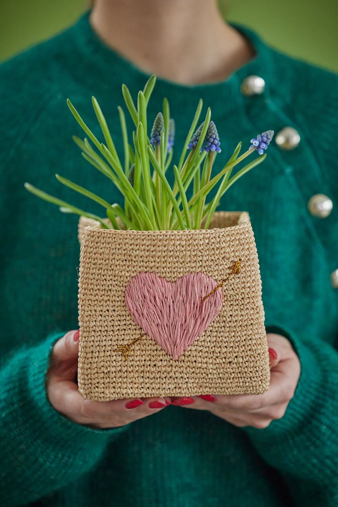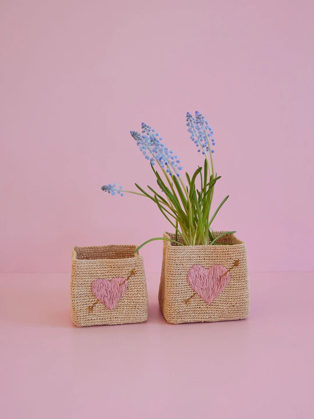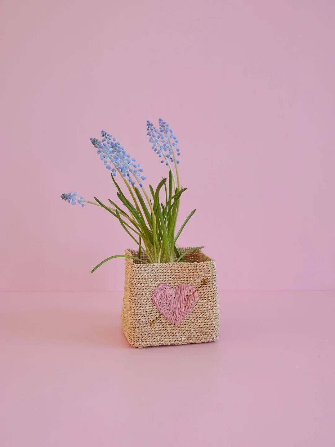 Großer, bezaubernder Aufbewahrungskorb mit einem niedlichen gestickten Herz in Rosa. Er besteht aus dem natürlichen und nachhaltigen Material Raffia und eignet sich perfekt für die Aufbewahrung von Büromaterial, Schlüsseln, Kerzen oder vielleicht sogar einer Grünpflanze ... Verwende ihn ganz nach deinen Bedürfnissen!