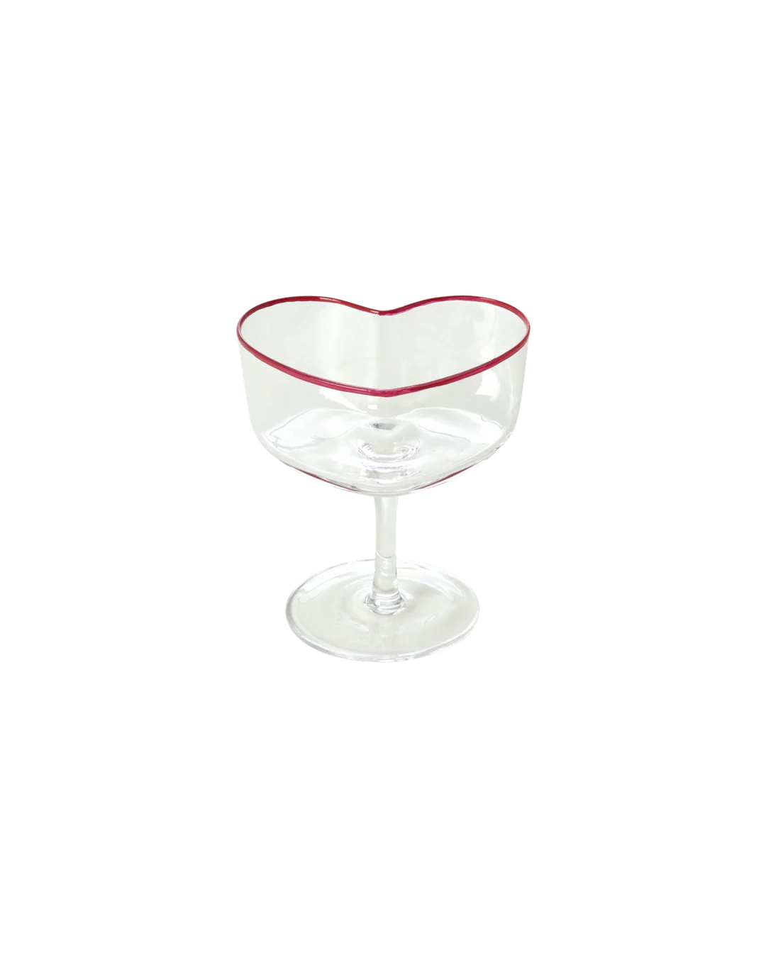 Lasst uns auf die Liebe anstoßen! Wie diese wunderschönen herzförmigen Champagnergläser. Sie sind mit einem roten Rand verziert und passen perfekt zu jeder Feier – einer fröhlichen Geburtstagsparty, einem liebevollen Hochzeitstag oder einfach zu Hause, wenn die kleinen Momente gefeiert werden wollen.