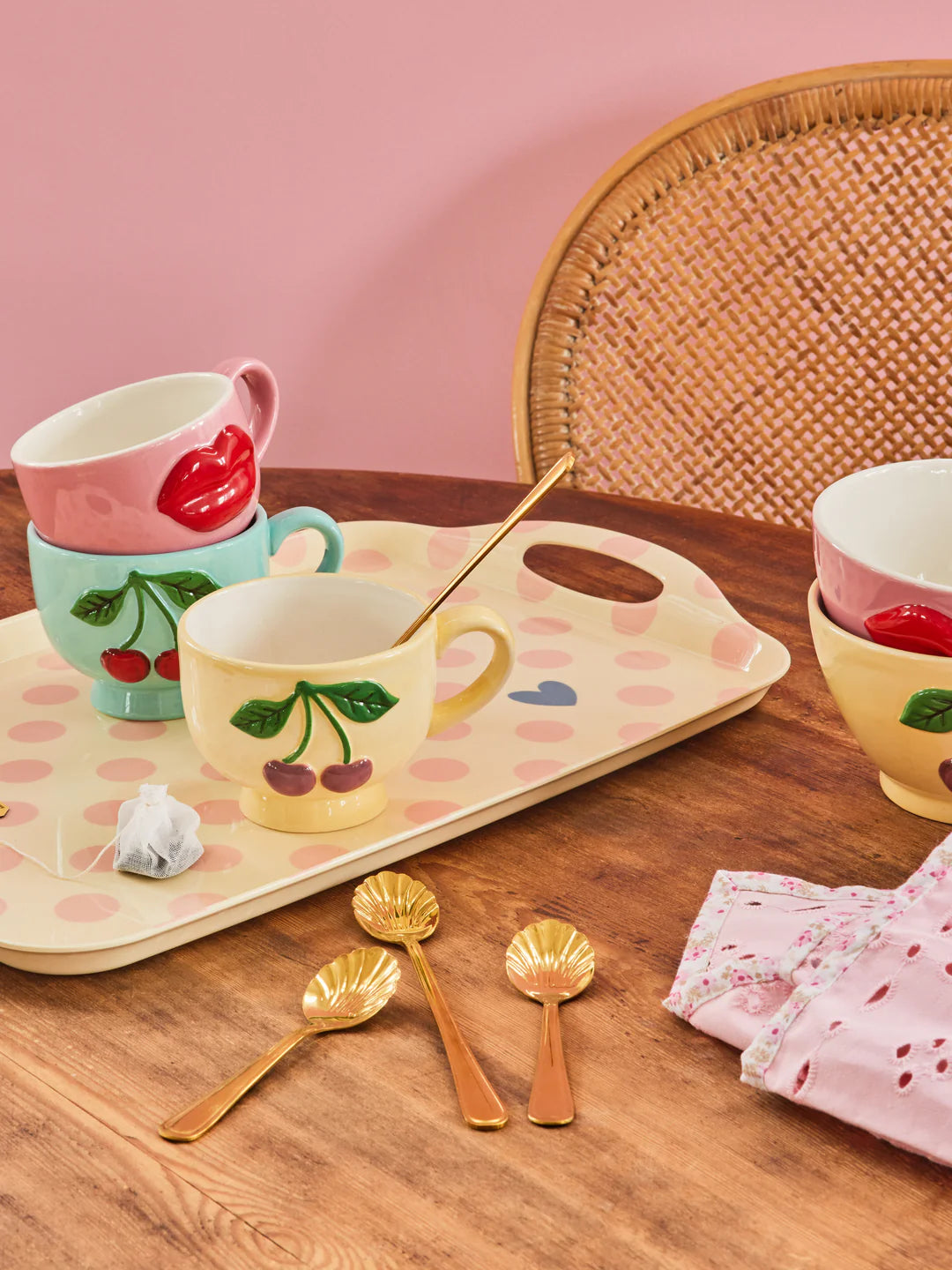 Die Kirsche auf dem Sahnehäubchen … oder du weißt schon – auf einer Tasse! Unsere wundervolle mintfarbenen Keramiktasse mit in das Design eingebetteten niedlichen, roten Kirschen ist perfekt für dich, weil du Farben und einzigartige Produkte in deinem Alltag liebst! Benutze sie für deinen Tee, Kaffee, Snacks, Schlüssel oder was auch immer du möchtest ... die Möglichkeiten sind endlos!