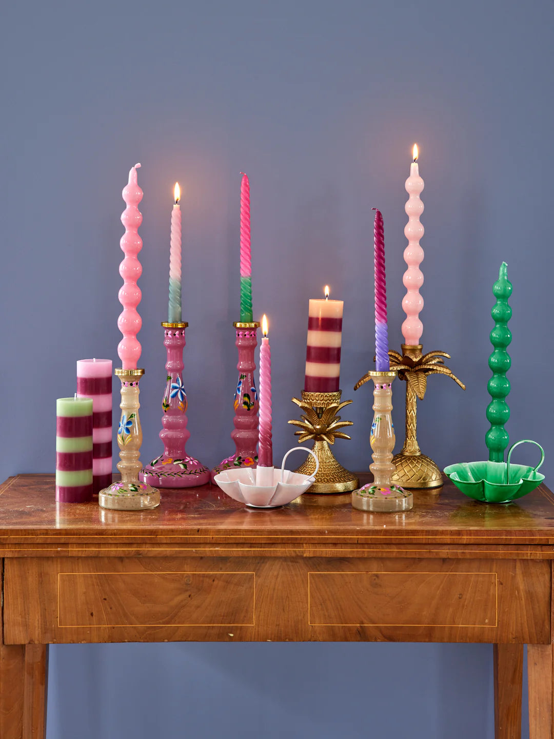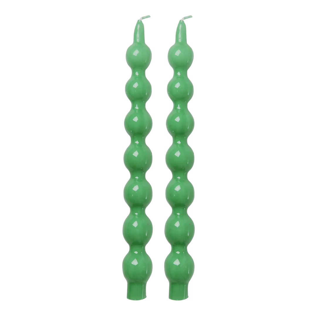 Zünde einen Funken Freude mit unserem Set aus zwei grünen Kerzen in einem einzigartigen geschwungenen Design an. Diese verspielten Stücke bringen einen Farbtupfer und ein warmes, einladendes Leuchten in deinen Raum. Mit einer Brenndauer von 10 Stunden sind sie perfekt für gemütliche Abende zu Hause. Bitte beachte, dass ihre charmanten Kurven ein bisschen Wachs tropfen lassen könnten, aber wir denken, es verleiht ihnen nur mehr Charakter.