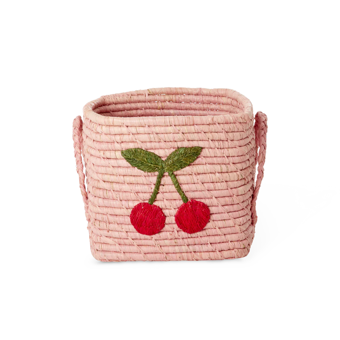 Wunderschöner, handgefertigter Korb in zartem Rosa mit Kirschstickerei – ein echter Klassiker! Hervorragend geeignet, um die kleinen und größeren Dinge des Alltags aufzubewahren … von Büchern und Papier bis hin zu Kerzen und Servietten. Er ist nicht nur hübsch und praktisch, sondern auch handgefertigt aus dem nachhaltigen Material Raffia – daher werden zwei Produkte nie genau gleich sein, was unserer Meinung nach Teil des Charmes ist.