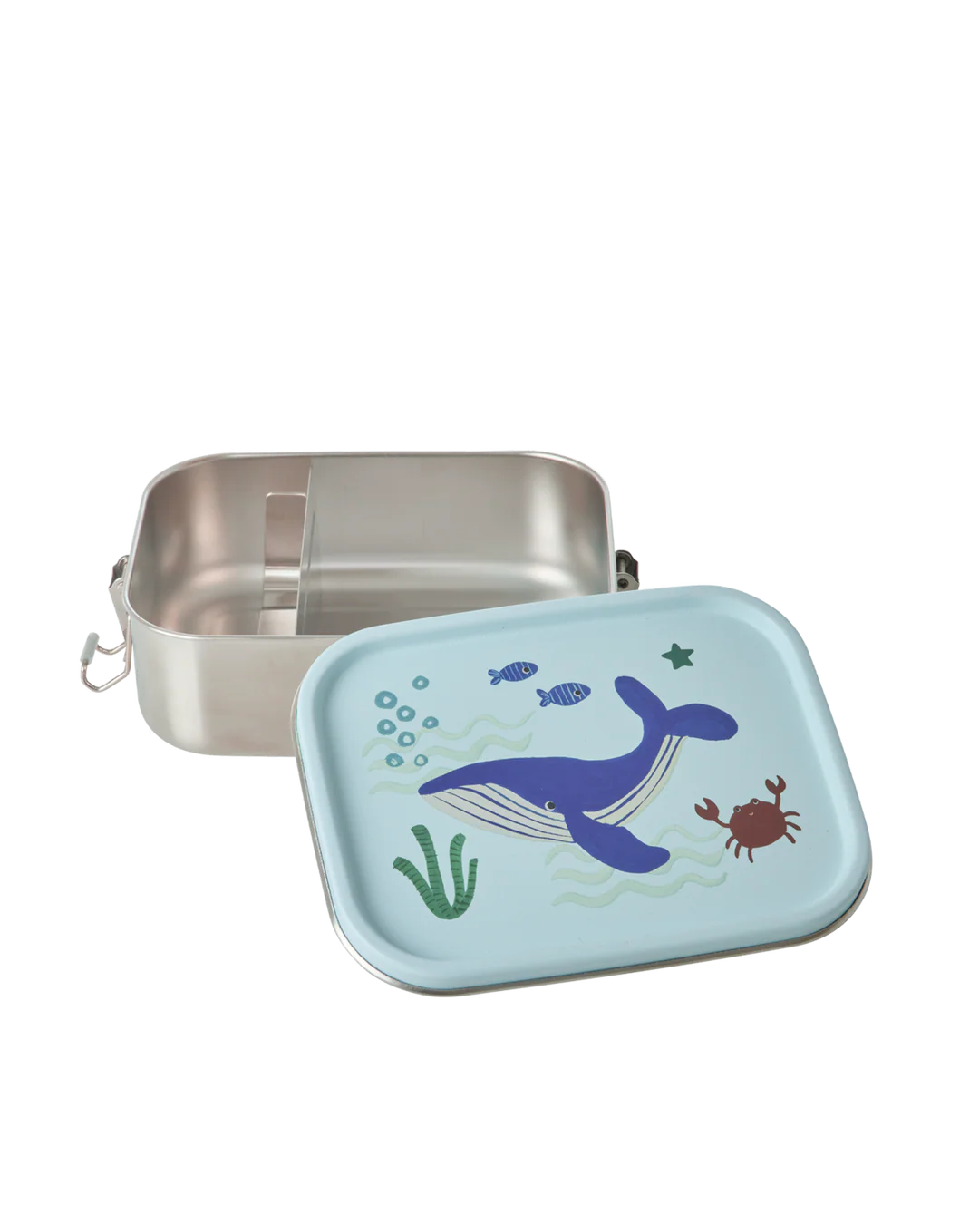 Mit unserer coolen Lunchbox aus Edelstahl wird die Mittagspause noch schöner! Sie verfügt über einen blauen Deckel mit niedlichen Meerestieren und einen beweglichen Trenner – perfekt, um deine Mahlzeiten übersichtlich und frisch zu halten!