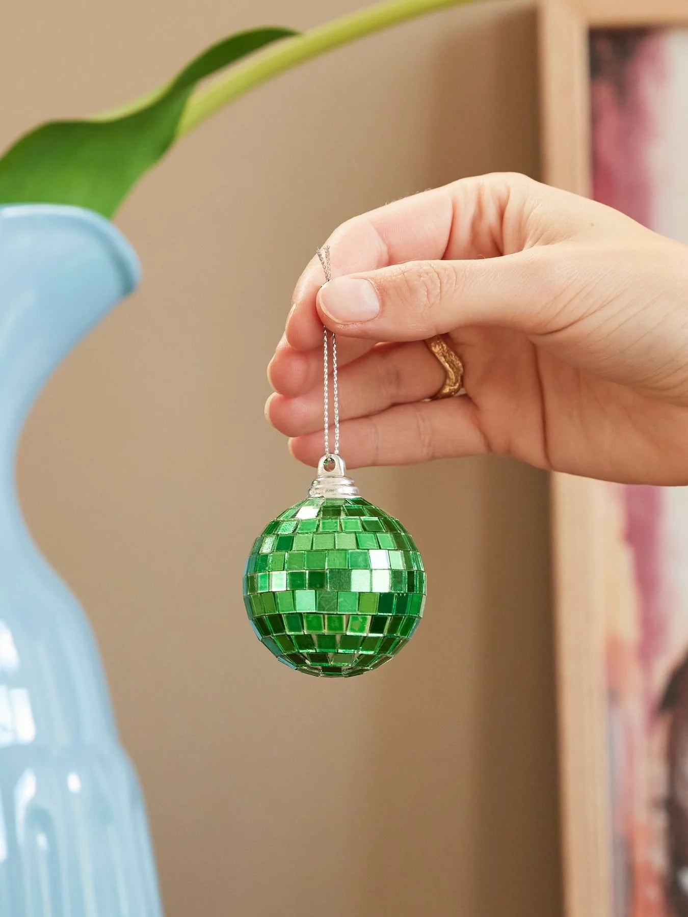 Nichts sagt mehr „Lasst uns feiern“ als eine Discokugel. Mit diesen funkelnden Lieblingen, die über deinem Kopf hängen oder auf deinem Tisch liegen, wird alles automatisch viel festlicher. Diese hier ist grün, klein und hat einen Durchmesser von 5 cm.