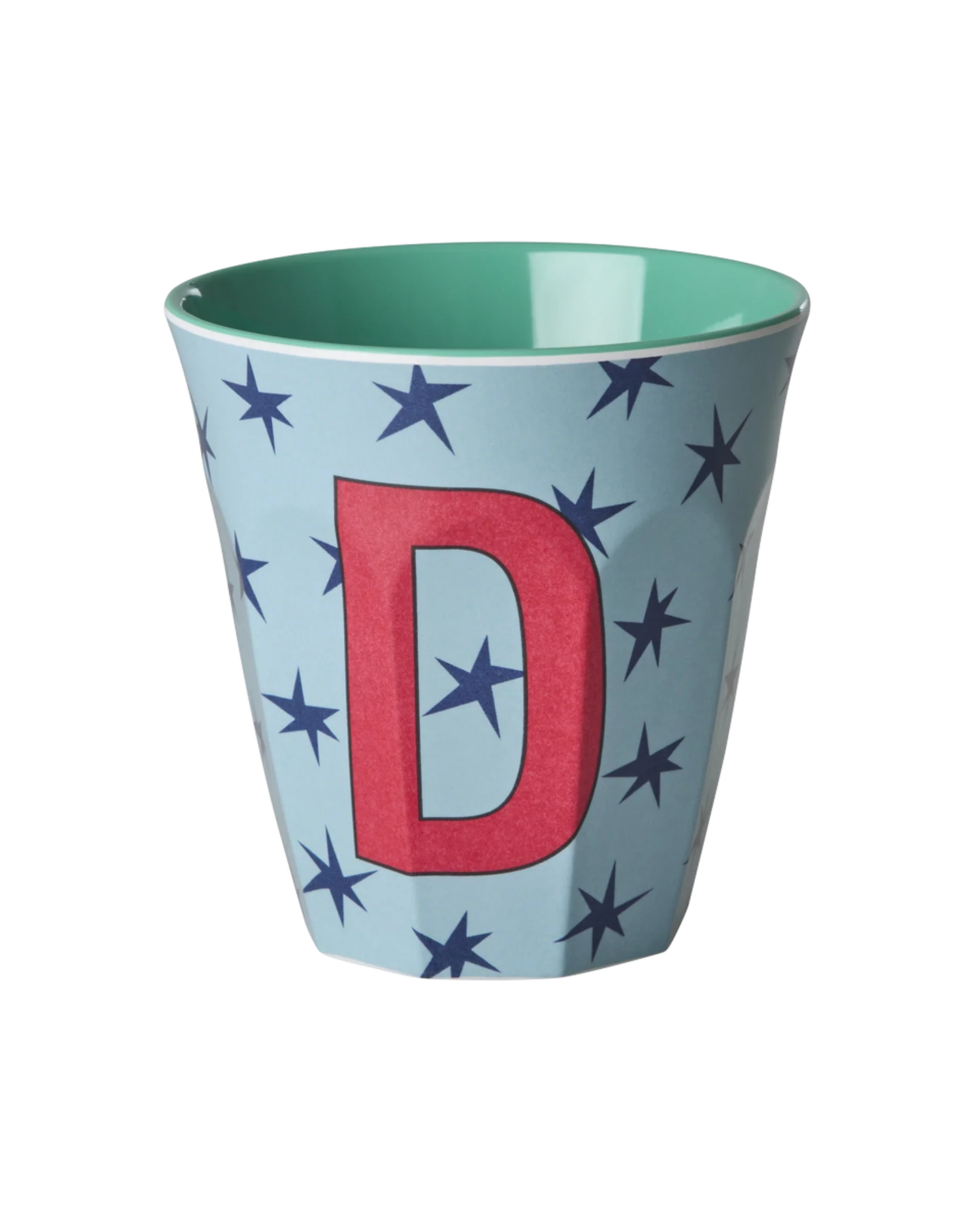 Unsere beliebte Alphabet-Tasse – hier mit dem Buchstaben D und coolen Sternen. Mix & Match und stelle dir genau das Wort zusammen, das du möchtest. Oder mache es einfach: Jede*r in der Familie bekommt seine eigene Tasse!