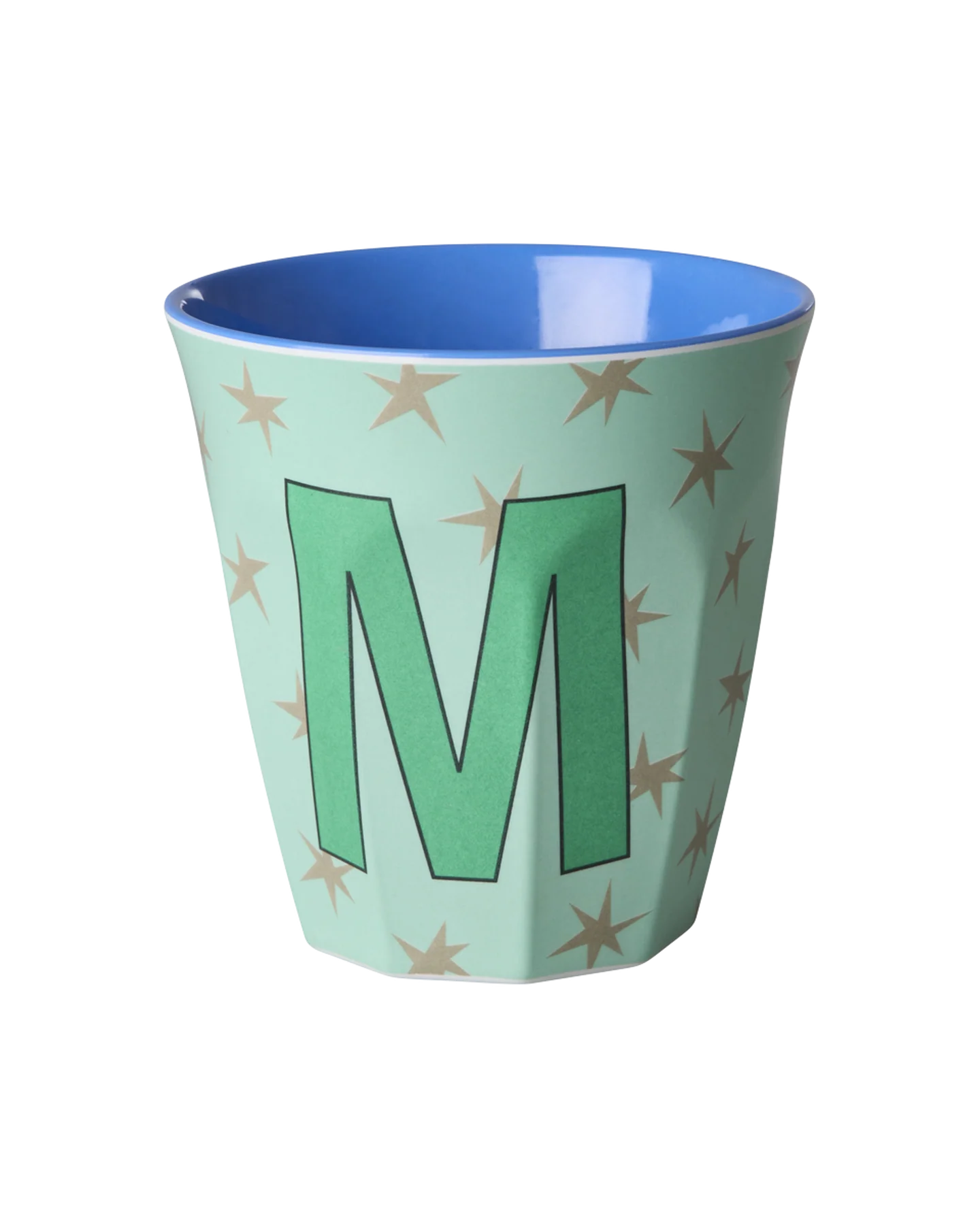 Unsere beliebte Alphabet-Tasse – hier mit dem Buchstaben M und coolen Sternen. Mix & Match und stelle dir genau das Wort zusammen, das du möchtest. Oder mache es einfach: Jede*r in der Familie bekommt seine eigene Tasse!