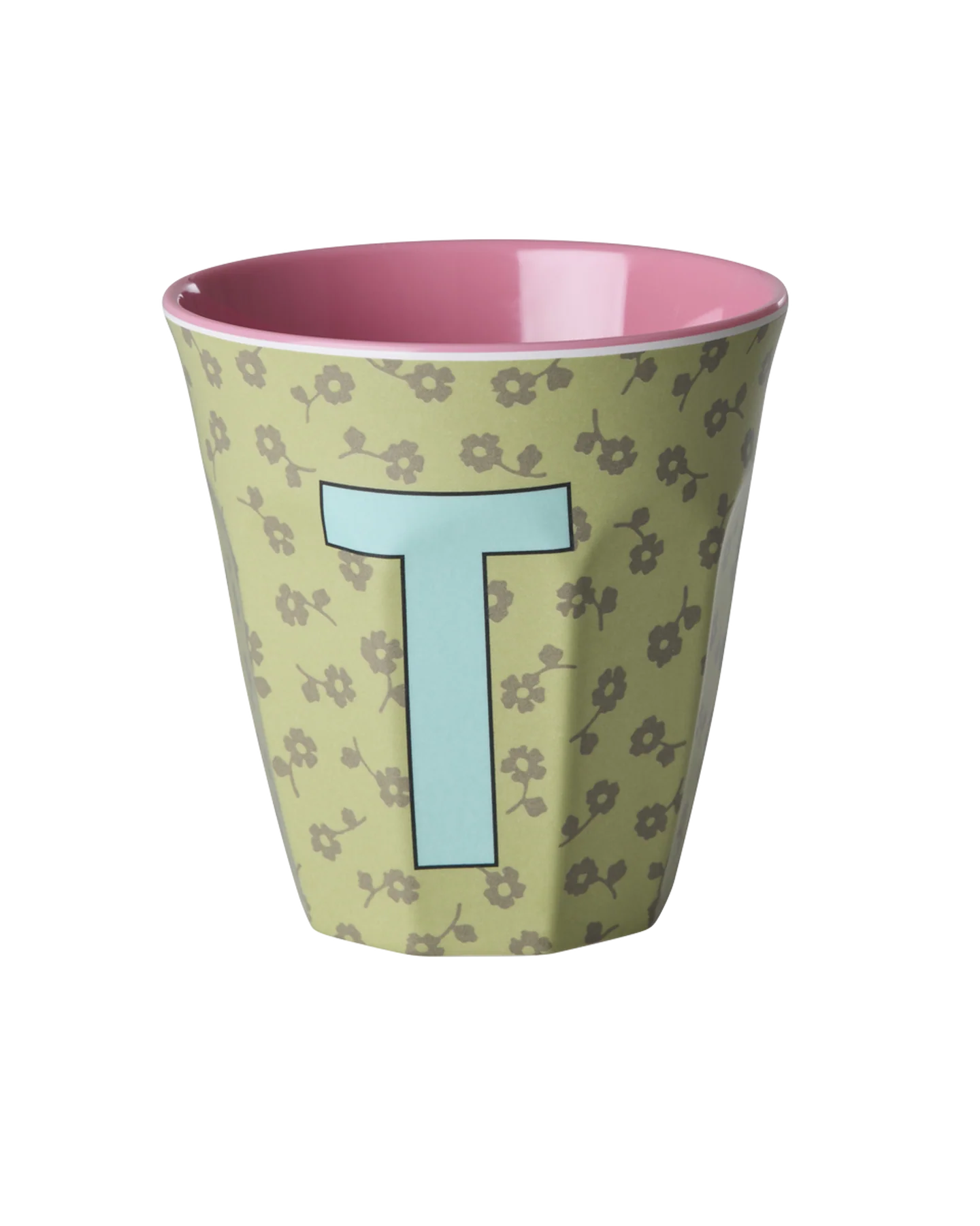 Unsere beliebte Alphabet-Tasse – hier mit dem Buchstaben T und niedlichen Blumen. Mix & Match und stelle dir genau das Wort zusammen, das du möchtest. Oder mache es einfach: Jede*r in der Familie bekommt seine eigene Tasse!