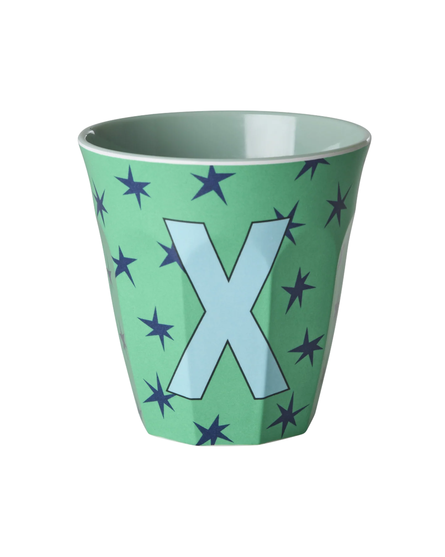 Unsere beliebte Alphabet-Tasse – hier mit dem Buchstaben X und coolen Sternen. Mix & Match und stelle dir genau das Wort zusammen, das du möchtest. Oder mache es einfach: Jede*r in der Familie bekommt seine eigene Tasse!