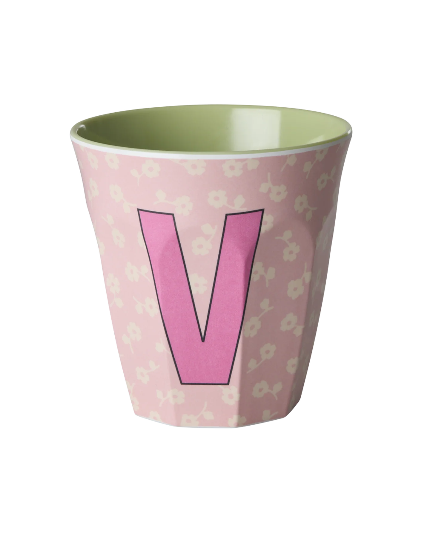 Unsere beliebte Alphabet-Tasse – hier mit dem Buchstaben V und niedlichen Blumen. Mix & Match und stelle dir genau das Wort zusammen, das du möchtest. Oder mache es einfach: Jede*r in der Familie bekommt seine eigene Tasse!