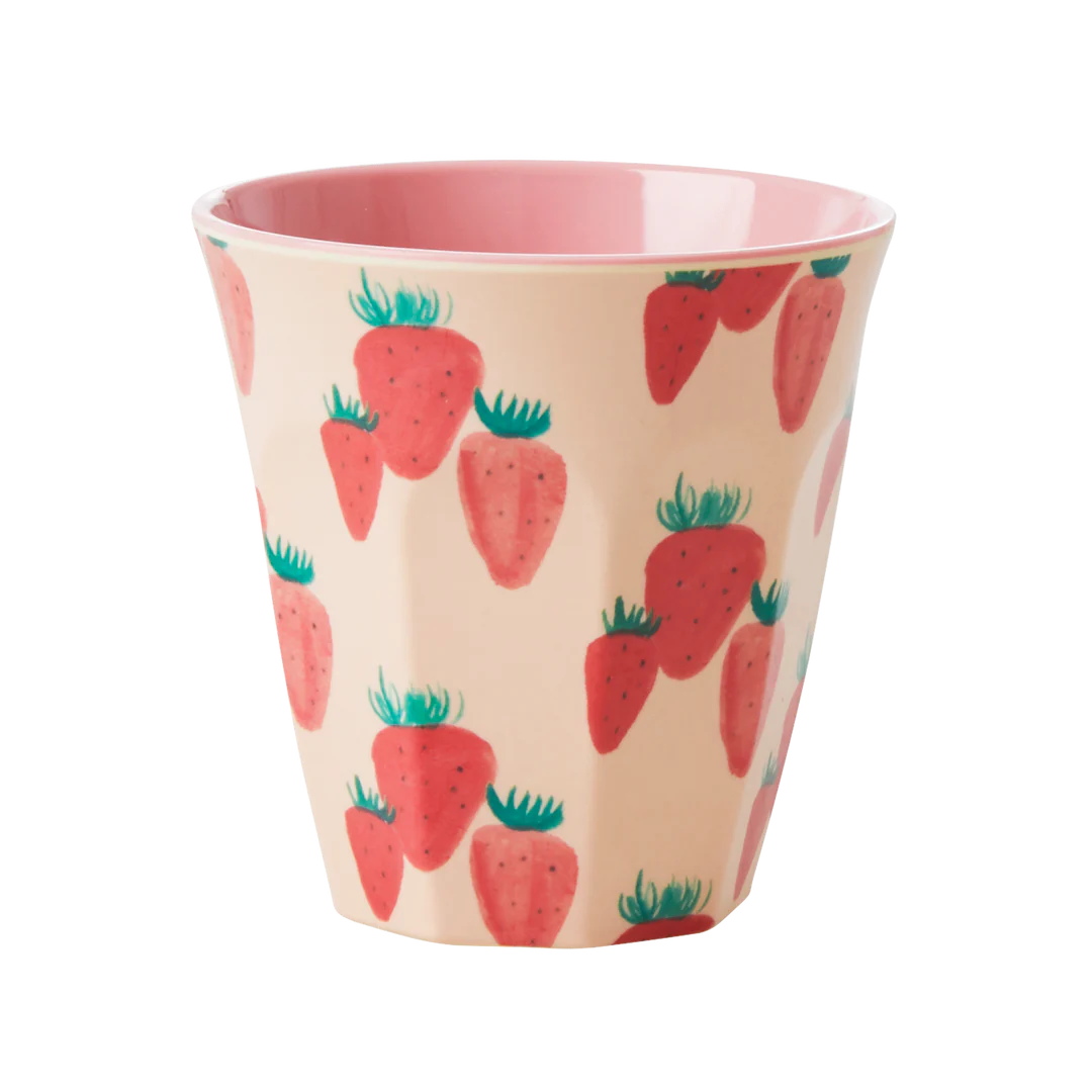 Mittelgroße Becher - Hellrosa - Strawberry Print