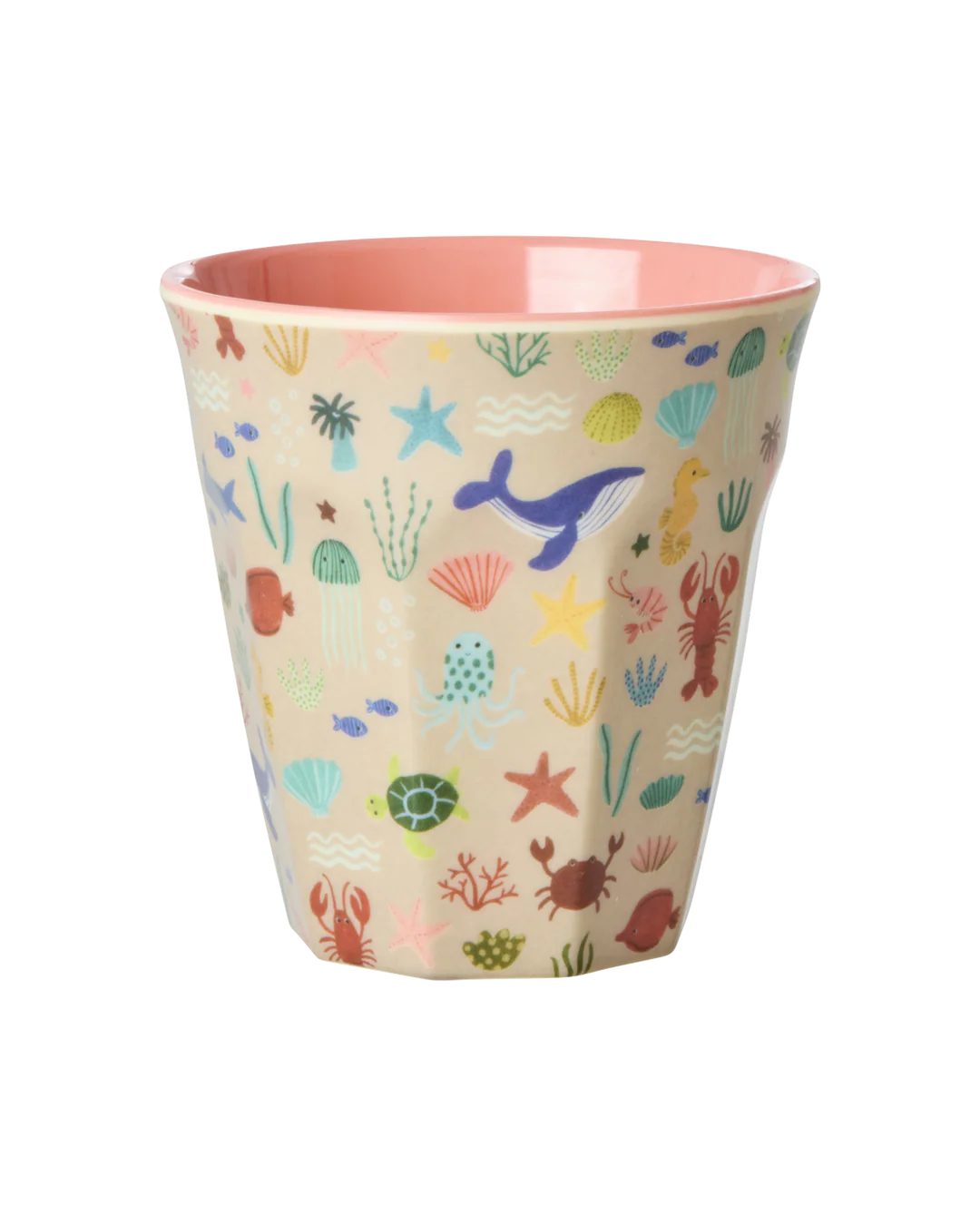 Genieße jeden Schluck mit unserem mittelgroßen Becher ... er ist voller Quallen, Haie und Seesterne und besteht aus dem praktischen Material Melamin – perfekt für kleine neugierige Hände! Melamin ist langlebig und dank seiner Robustheit und einfachen Reinigung ideal für den täglichen Gebrauch. Bitte beachte, dass das Produkt nicht für die Mikrowelle geeignet ist.