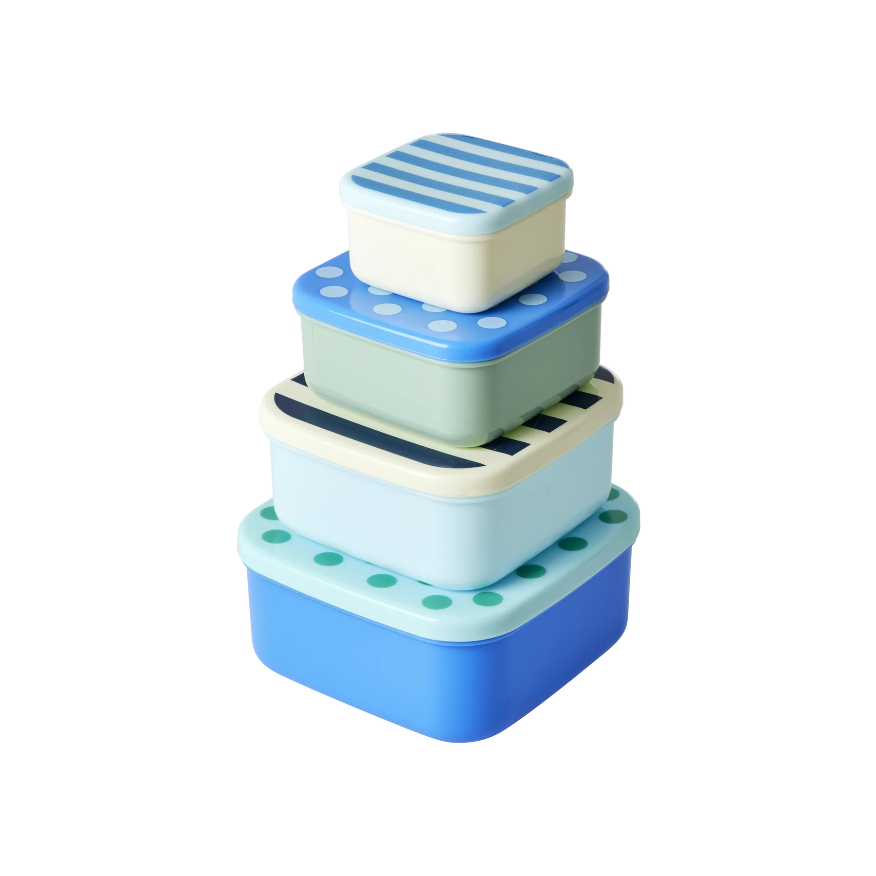 Diese Aufbewahrungsdosen sind einfach unverzichtbar! Für Nüsse, etwas Dressing, einen kleinen Snack, Reste ... oder was auch immer du aufbewahren möchtest. Es gibt sie in vier verschiedenen Größen und Blautönen und die Deckel sind entweder gestreift oder voller niedlicher Punkte.