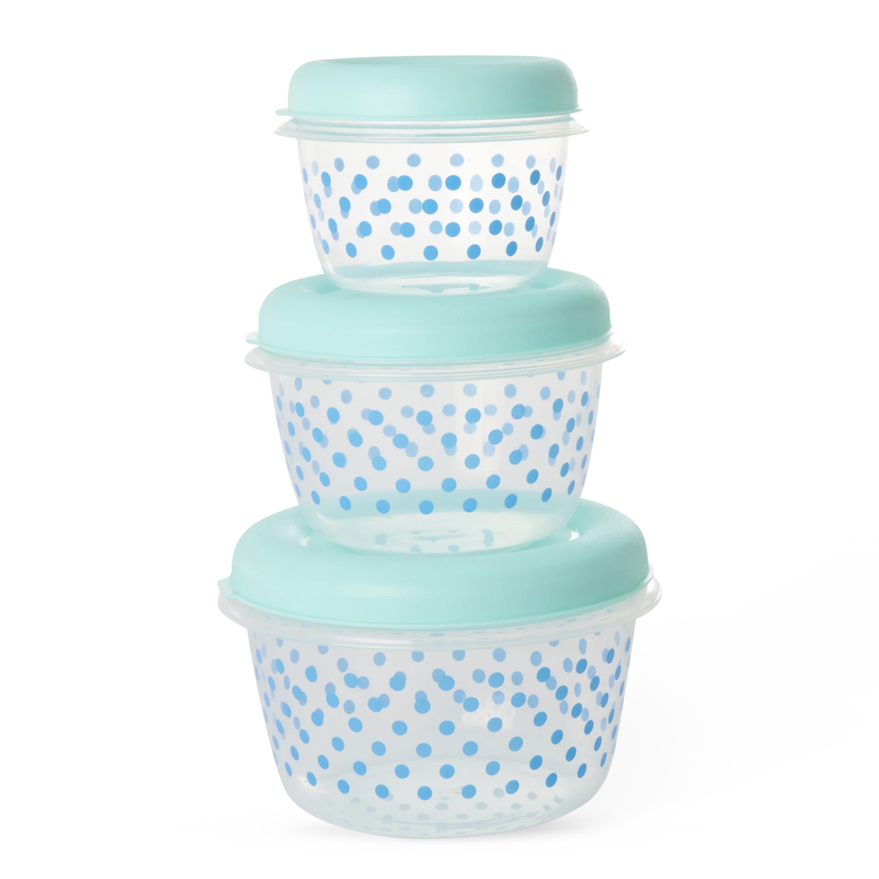 Absolut unverzichtbare Aufbewahrungsdosen für Nüsse, etwas Dressing, einen Snack, Reste… oder was auch immer du brauchst. Sie werden im Set mit drei verschiedenen Größen, blauen Deckeln und niedlichen blauen Punkten geliefert.