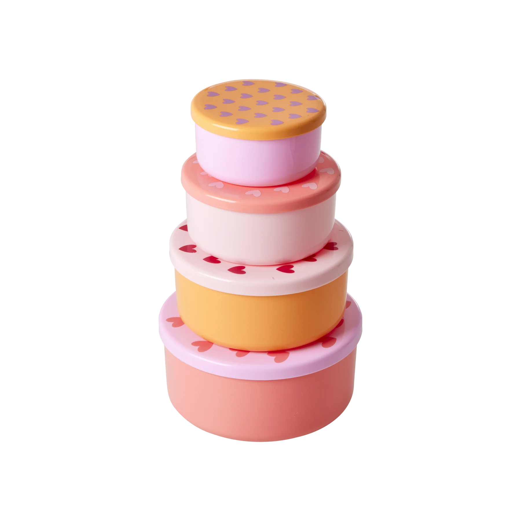 Diese runden Aufbewahrungsdosen sind einfach unverzichtbar! Für Nüsse, etwas Dressing, einen kleinen Snack, Reste ... oder was auch immer du aufbewahren möchtest. Die Deckel sind alle mit Herzchen verziert, jedoch haben sie vier verschiedenen Größen und Rosatöne.