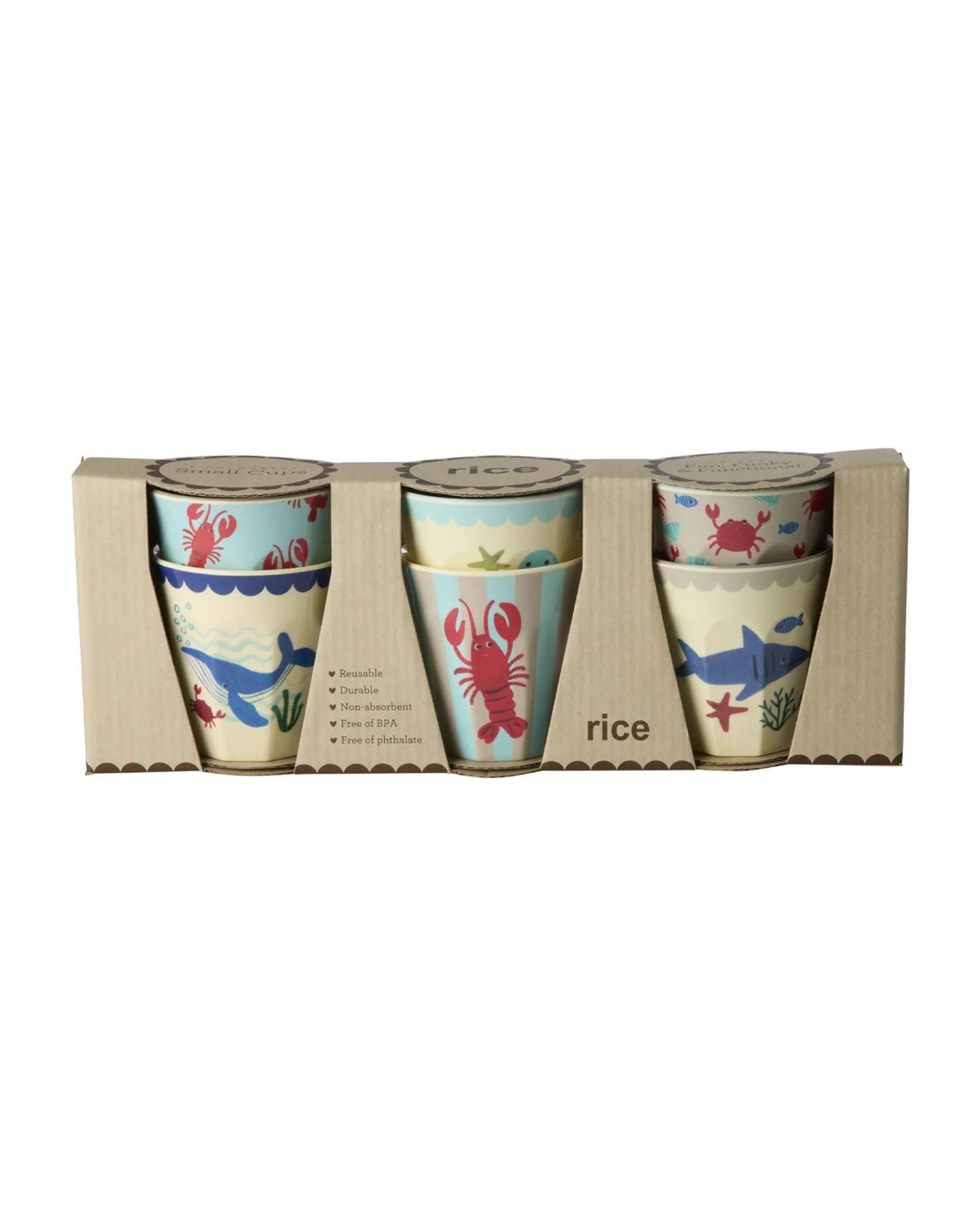 Verliebe dich in Haie, Fische, Hummer und all die anderen Meeresbewohner, die auf dieser Box mit 6 unserer kleinen Melaminbecher abgebildet sind! Melamin ist langlebig und ideal für den täglichen Gebrauch – dank seiner Robustheit und einfachen Reinigung. Die Becher sind super praktisch für Kinder und Erwachsene und fassen bis zu 160 ml! Bitte beachten: Nicht mikrowellengeeignet.