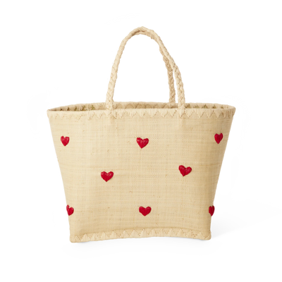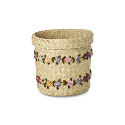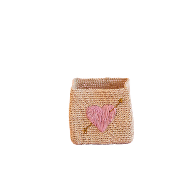 Kleine Quadratisch Raffia Aufbewahrungskorb - Natürlich - Pink Heart Embroidery