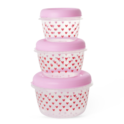 Rund Lebensmittelboxen - Pink - Hearts Print - 3er Set