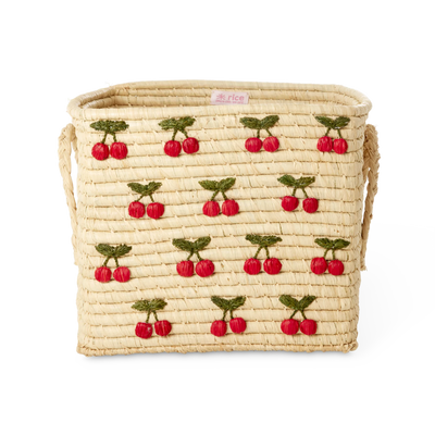 Quadratisch Raffia Korb - Natürlich - Small Cherries All Over Design