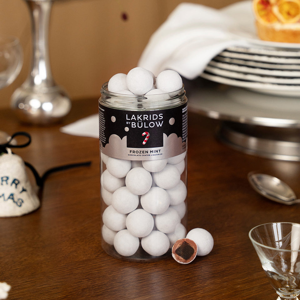 FROZEN MINT sorgt für einen frischen, weißen Wintergenuß. Verwöhne dich mit süßem Lakritz und zarter Milchschokolade mit einem Hauch von Minze. Eine knusprige Schale aus weißem Puderzucker erinnert an weißen, frisch gefallenen Schnee.