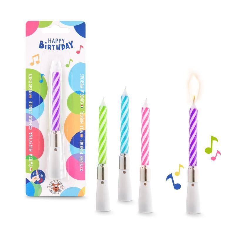 BF KERZE MIT SONG "HAPPY BIRTHDAY", 4-FACH SORTIERT