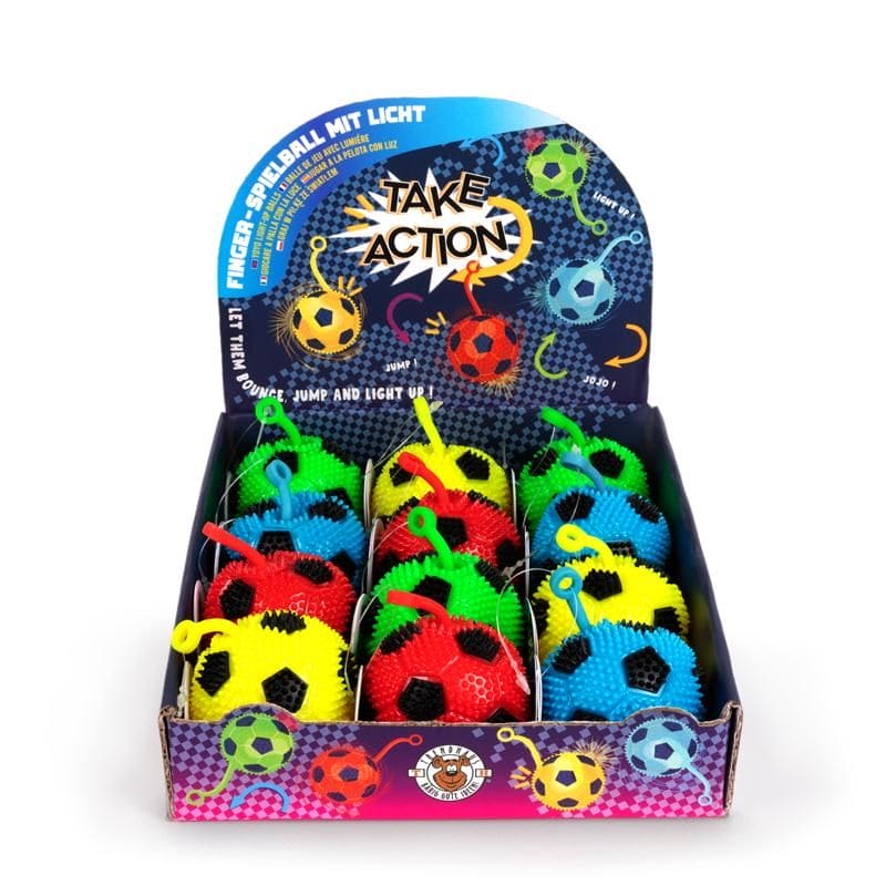 Kick it! Dieser Light-Up Finger-Spielball mit ganz besonderer Haptik vertreibt Langeweile sofort! Ein cooler Schleuderspaß mit blau-rot blinkendem Lichteffekt zum Drücken, Spielen und Werfen. Füllung: Luft.