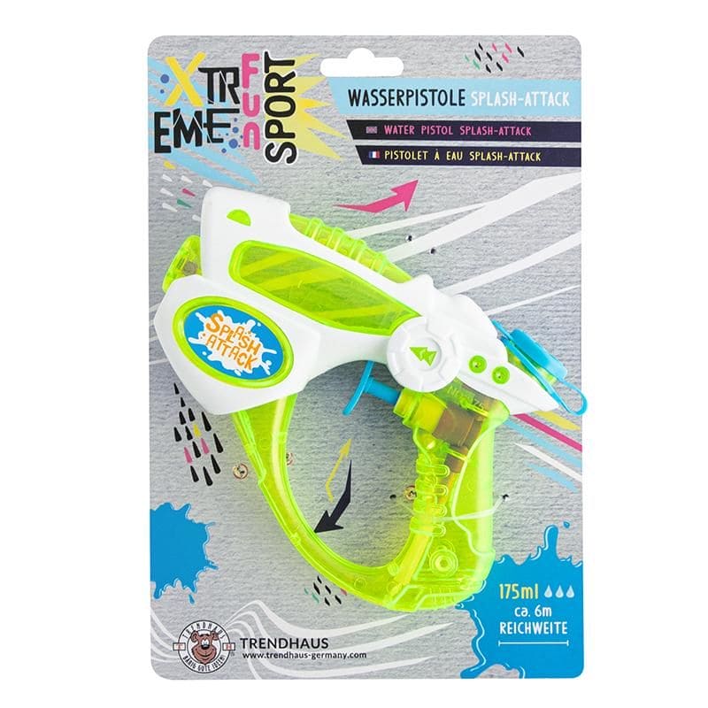 Füllen - zielen - Splash-Attack! Mit dieser Wasserpistole sind Action und Abkühlung garantiert. Mit einem Wassertank von ca. 175 ml und einer großen Reichweite von ca. 6 Metern, ideal für spontane Wasserschlachten. Worauf wartest du?