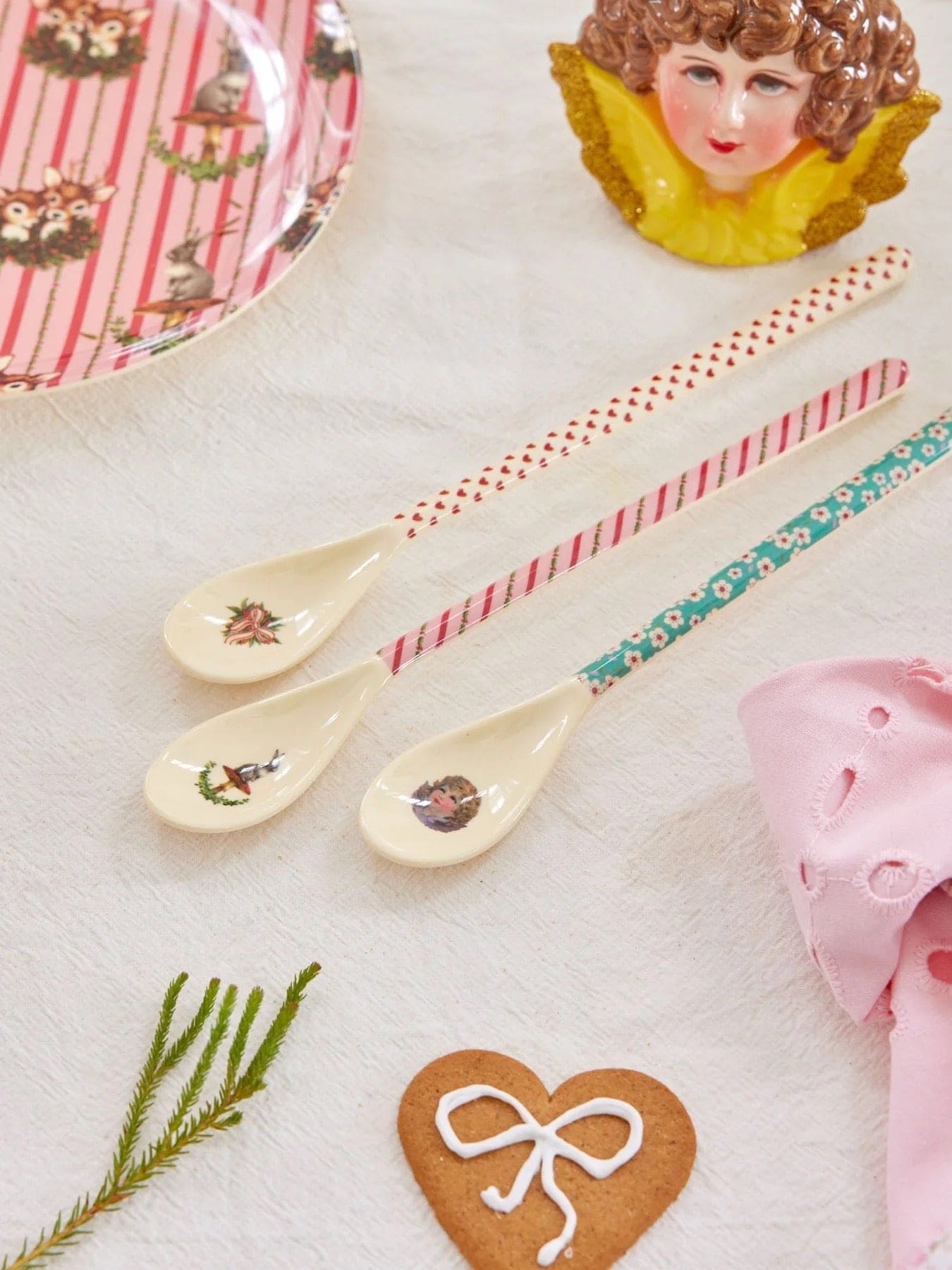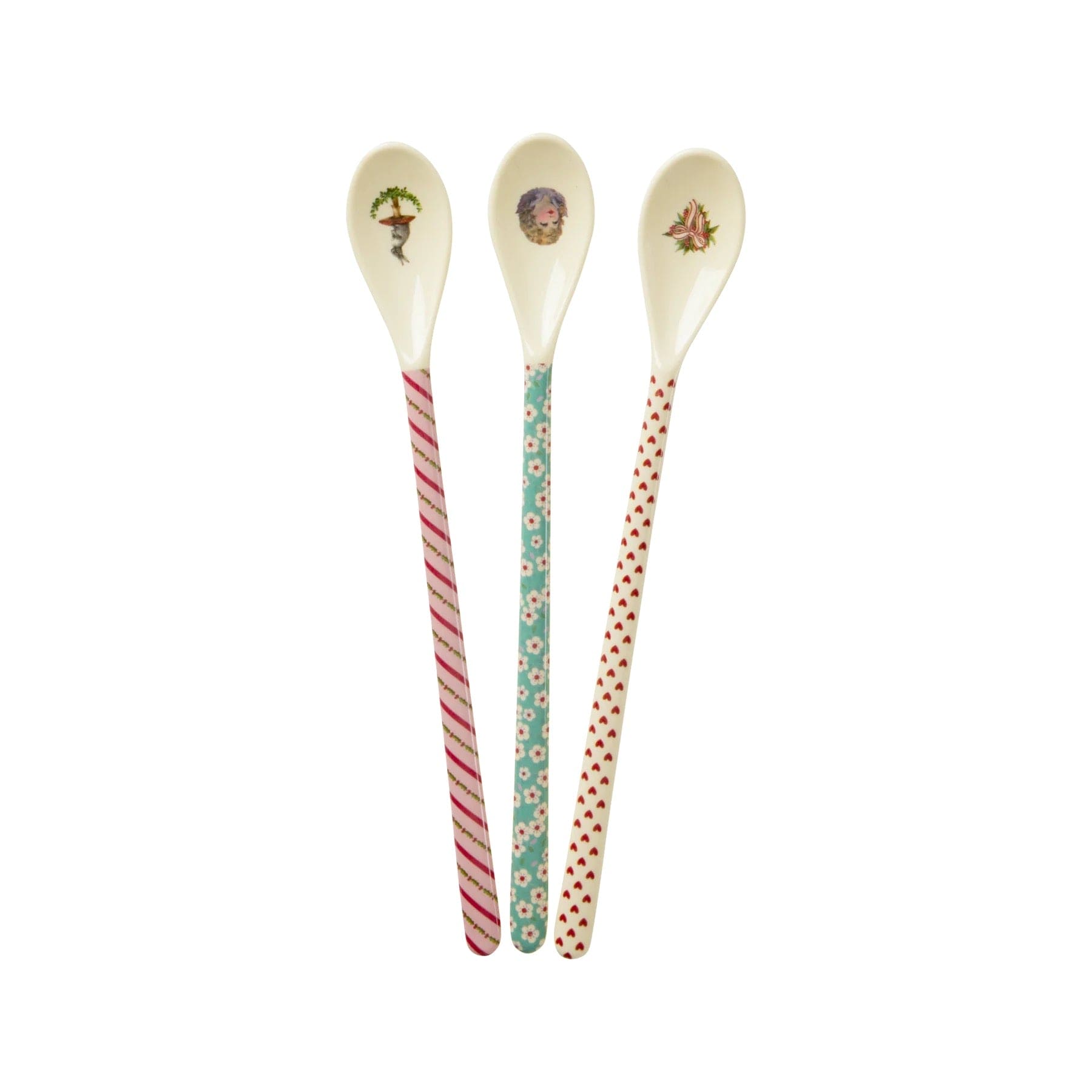 Genieße die Feiertage mit unserem Set aus drei unverwechselbaren Melamin-Lattelöffeln mit Weihnachtsmotiven!