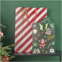 Ihre Weihnachtsgeschenke können Sie einfach in die niedlichen Geschenktasche im rot-weißen Zuckerstangen-Look einpacken. Die Ausführung bietet Platz für verschiedene Überraschungen. Das Material zeichnet sich mit langlebigen und wiederverwendbaren Eigenschaften aus. Dank der farblich passenden Tragebänder lässt sich die Geschenktasche problemlos überall mit hin nehmen und zaubert dem Beschenkten ein lächeln ins Gesicht.