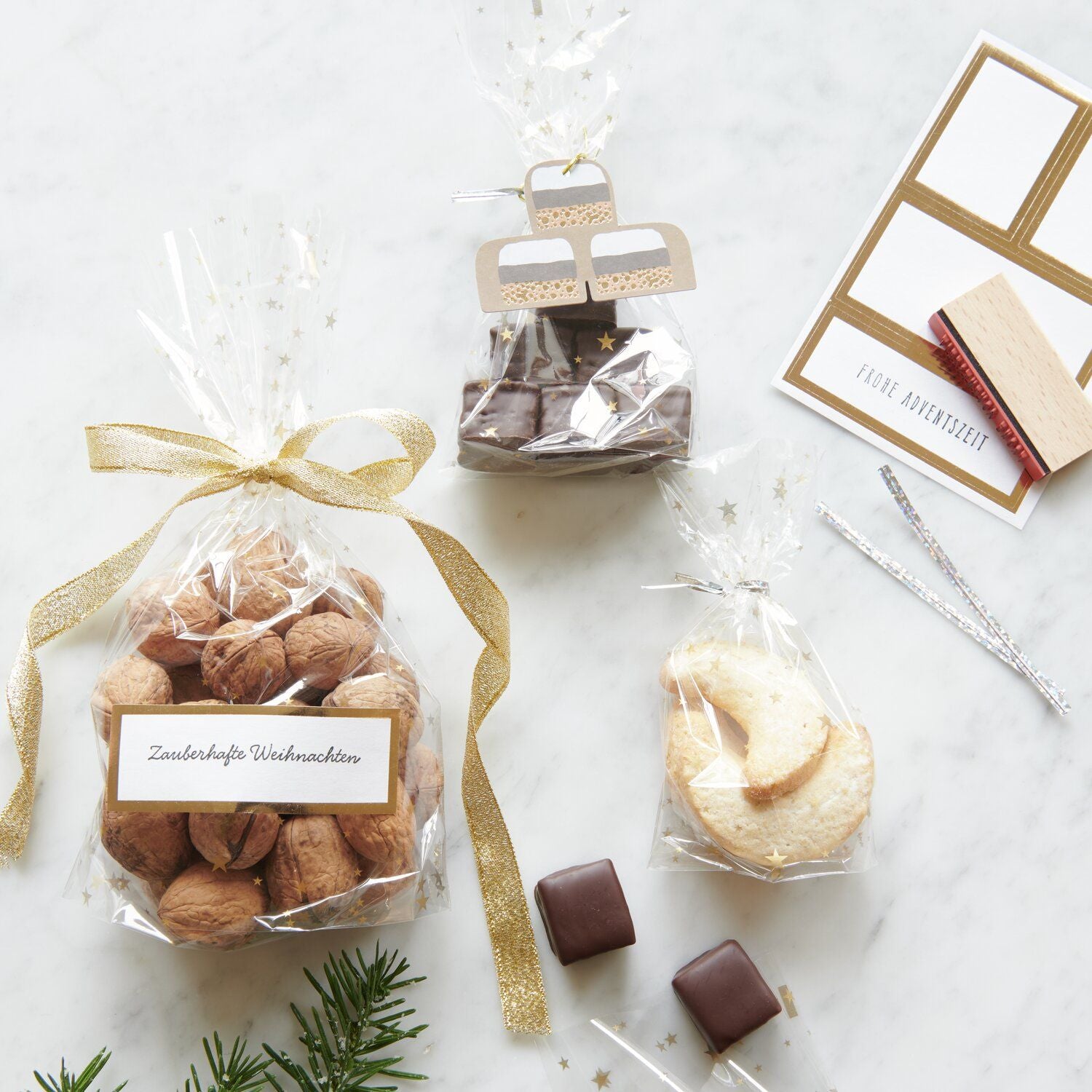 - Papieretiketten mit goldenem Rahmen