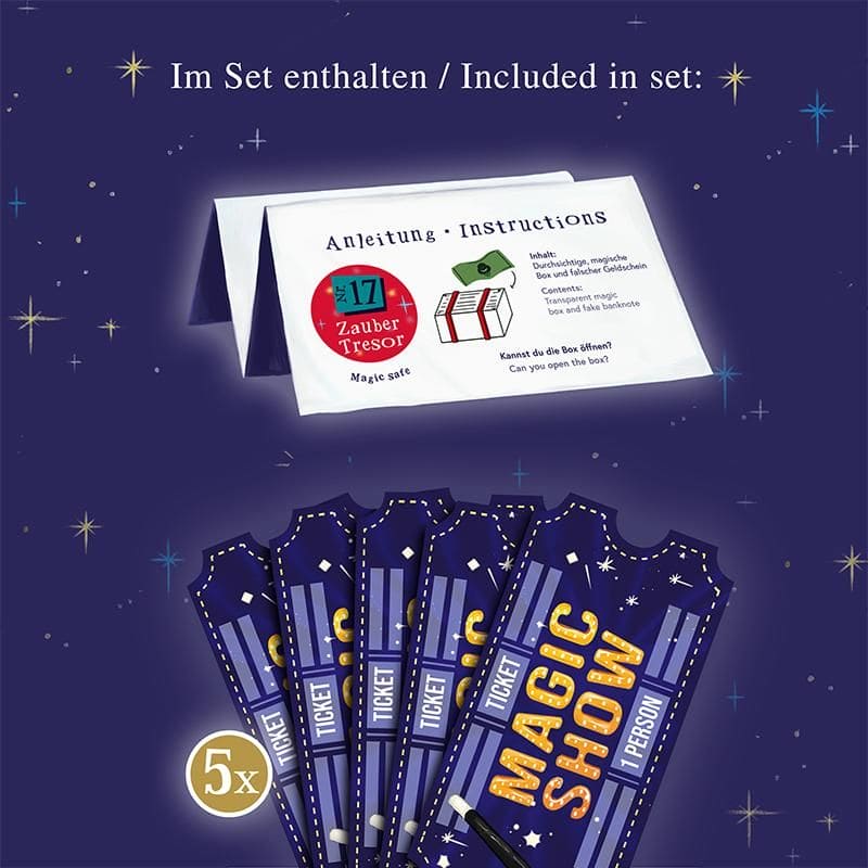 Kannst du die Box öffnen? Nur du kannst diese unglaubliche Box, in der sich ein Geldschein befindet, mit einem geheimen magischen Trick öffnen. Dein Publikum wird es nicht glauben können und daran verzweifeln! Die leicht verständliche, bebilderte Anleitung sowie das Video-Tutorial mit TikTok-Zauberer MARV zeigen dir, worauf es bei dieser verblüffenden Illusion ankommt. Zusätzlich erhältst du 5 Tickets, mit denen du zu deiner eigenen MAGIC SHOW einladen kannst. Geeignet für Nachwuchszauberer ab 6 Jahren.