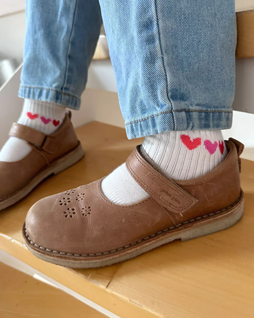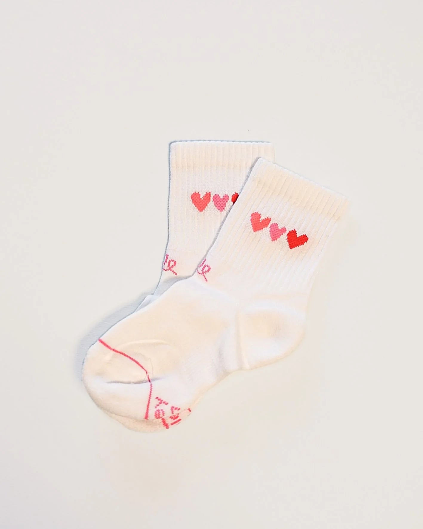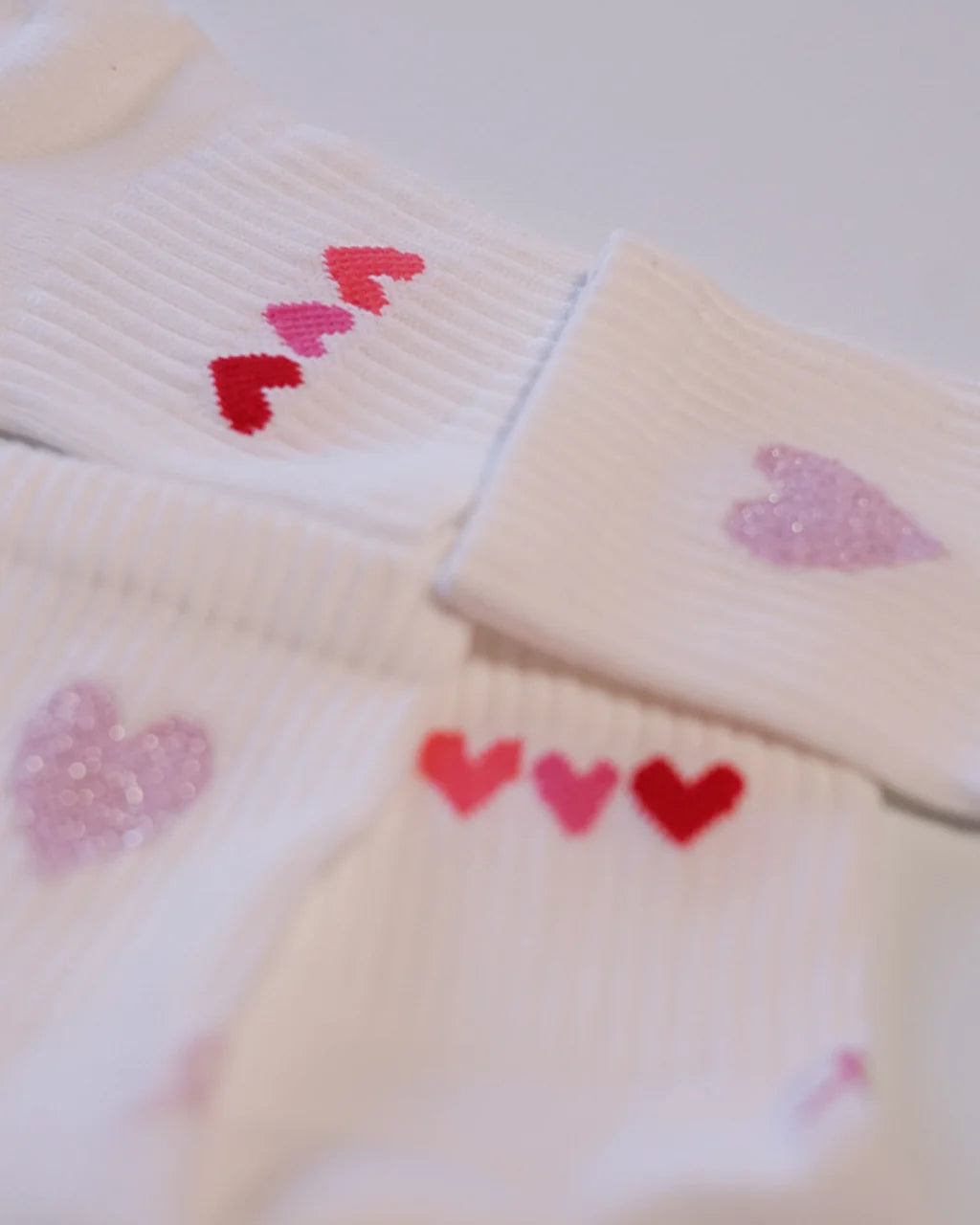 Das drei Herzen in Rot und Pink zieren die stylische Tennissocke.