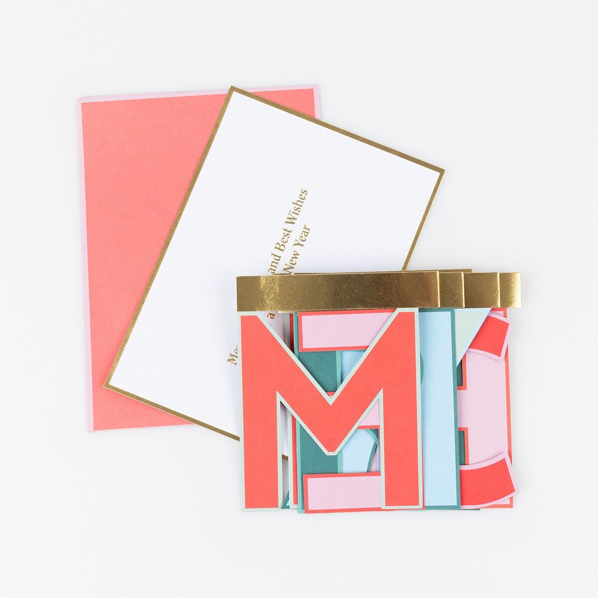 Verbreite festliche Freude mit dieser farbenfrohen Faltkarte für deine Liebsten! Beim Öffnen entfaltet sich eine fröhliche Weihnachtsbotschaft in einer Mischung aus klassischen Farbtönen mit modernen Akzenten in Rosa, Blau, Mint und glänzender Goldfolie – perfekt als besonderer Blickfang auf dem Kaminsims. Durch das aufwendige Design und die liebevollen Details wird sie zu einem Erinnerungsstück, das lange nach der Weihnachtszeit Freude bereitet.