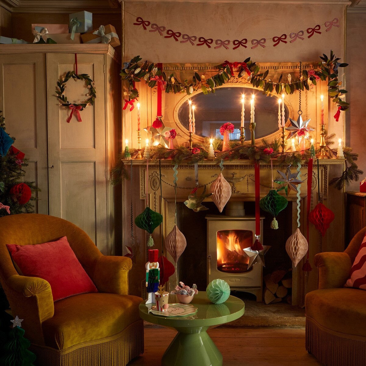 Schleifen feiern ihr Comeback – und wie! Diese elegante Girlande sorgt garantiert für einen eindrucksvollen Look bei jeder festlichen Feier. Ob über dem Tisch, an der Wand, im Türrahmen oder auf der Veranda – das leuchtende Rot und Rosa mit glitzerndem Effekt bringt sofort festliche Stimmung in dein Zuhause.
