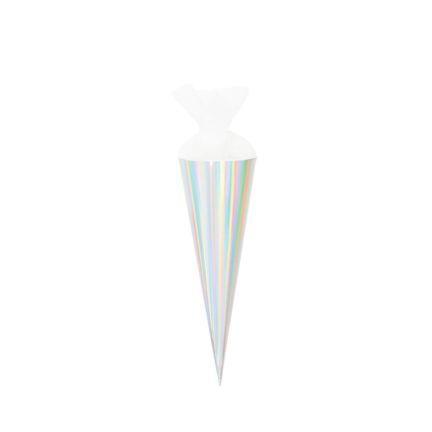 Schultüte mit Tüllverschluss, 35cm, Irisierend-Weiß, FSC Recycled
